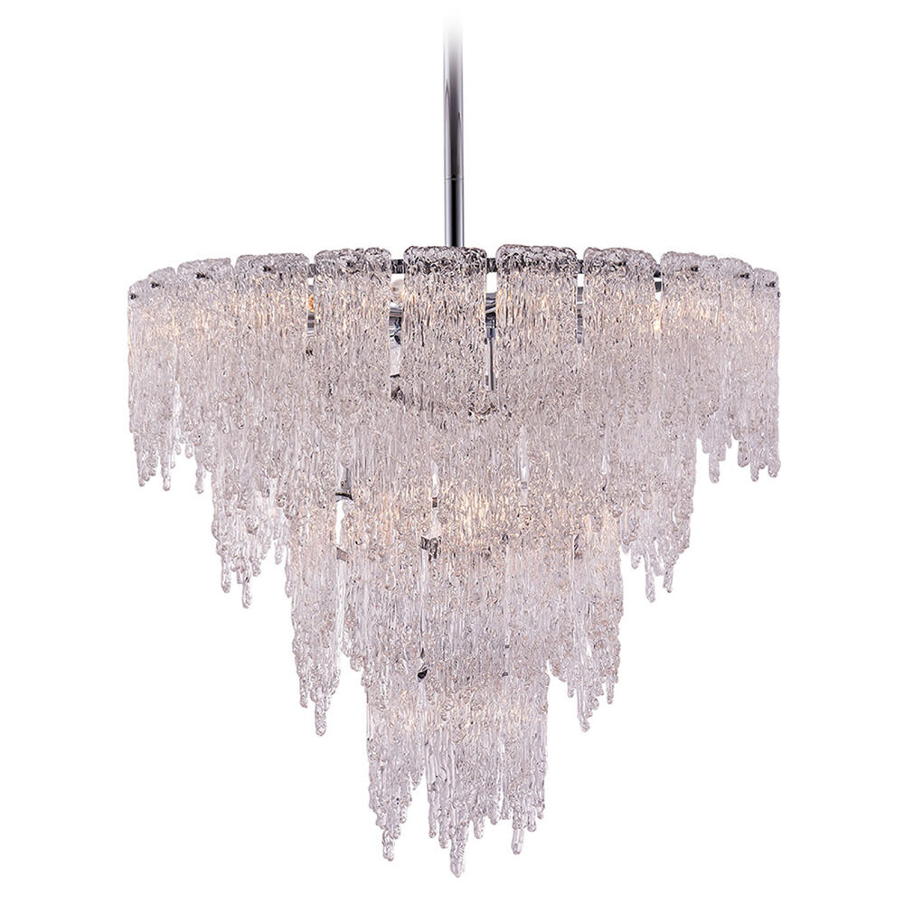 Contemporary / modern polished chrome 19-light pendant light with clear icy rivers glass shade