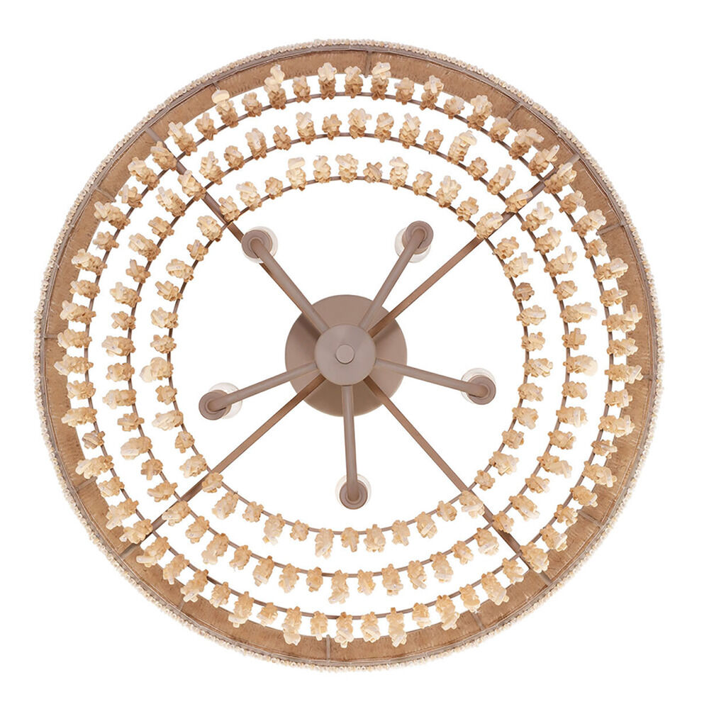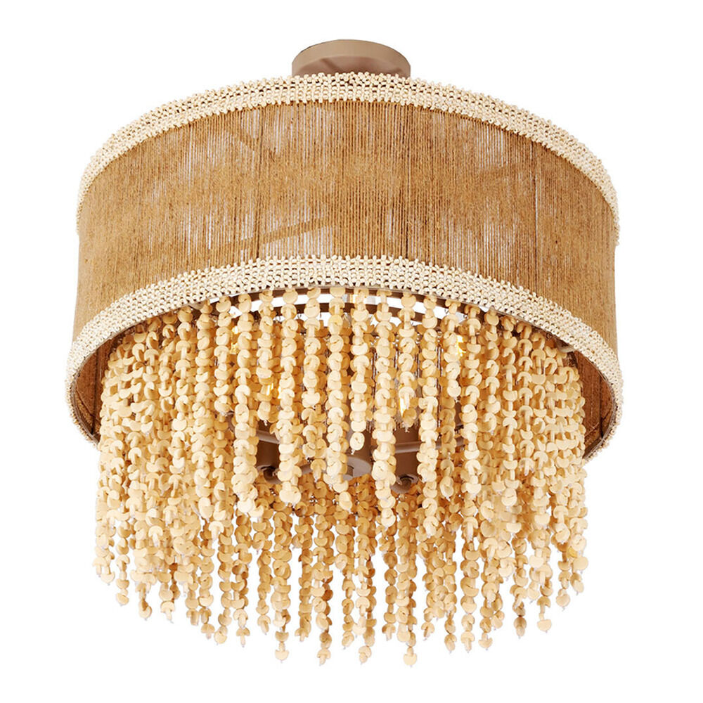 The Naturale Semi-Flushmount Light by Kalco Lighting embodies the relaxed sophistication of coastal-inspired design. Crafted from a harmonious mix of natural materials, it brings warmth and texture to interiors while maintaining a soft, refined presence. The shade is hand-wrapped in Jute rope and accented with delicately strung wooden moon-shaped beads and textured coco bead bands that encircle the top and bottom rims, adding organic depth and artisanal charm.