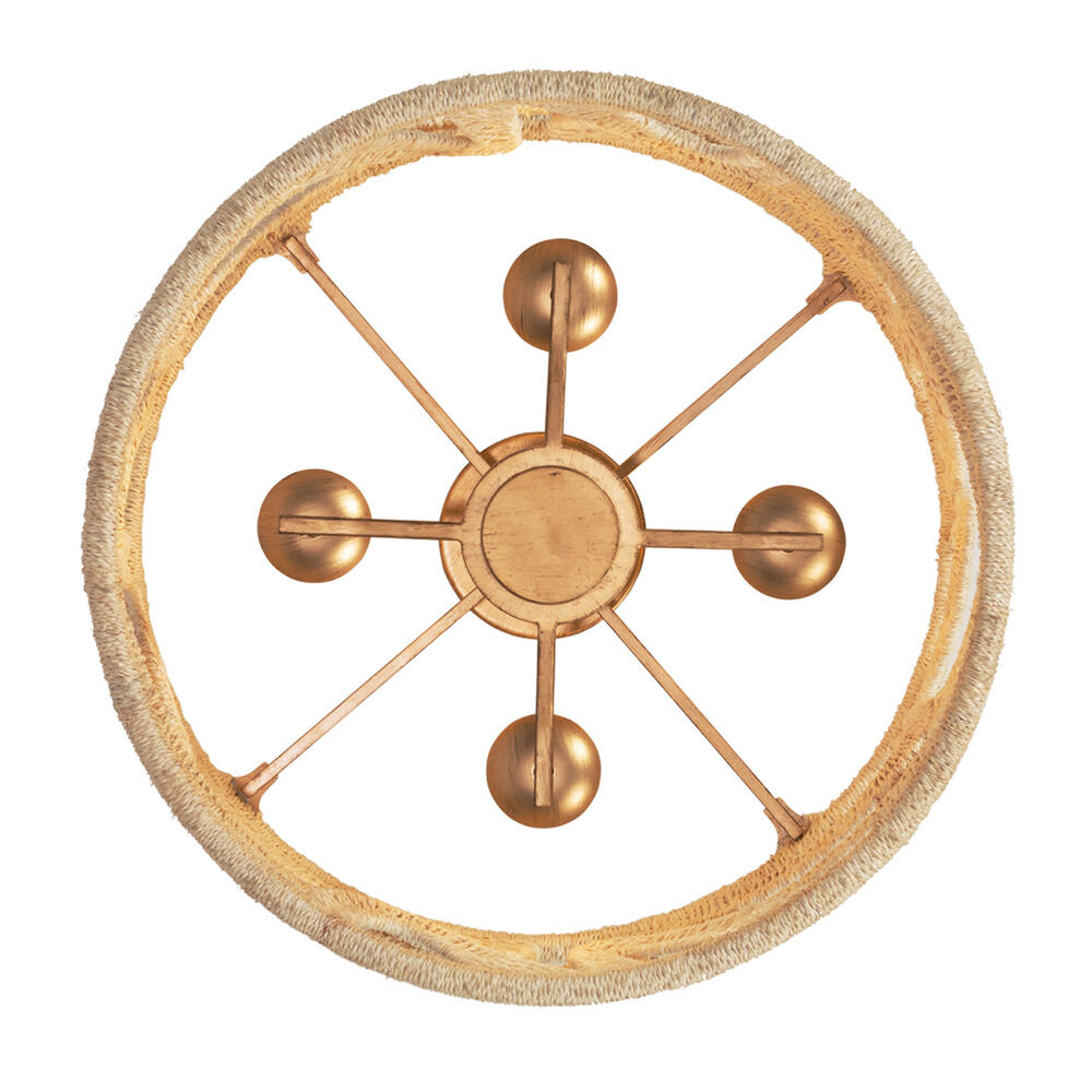 Organic modern gold & white 4-light indoor ceiling light with bleached abaca rope shade
