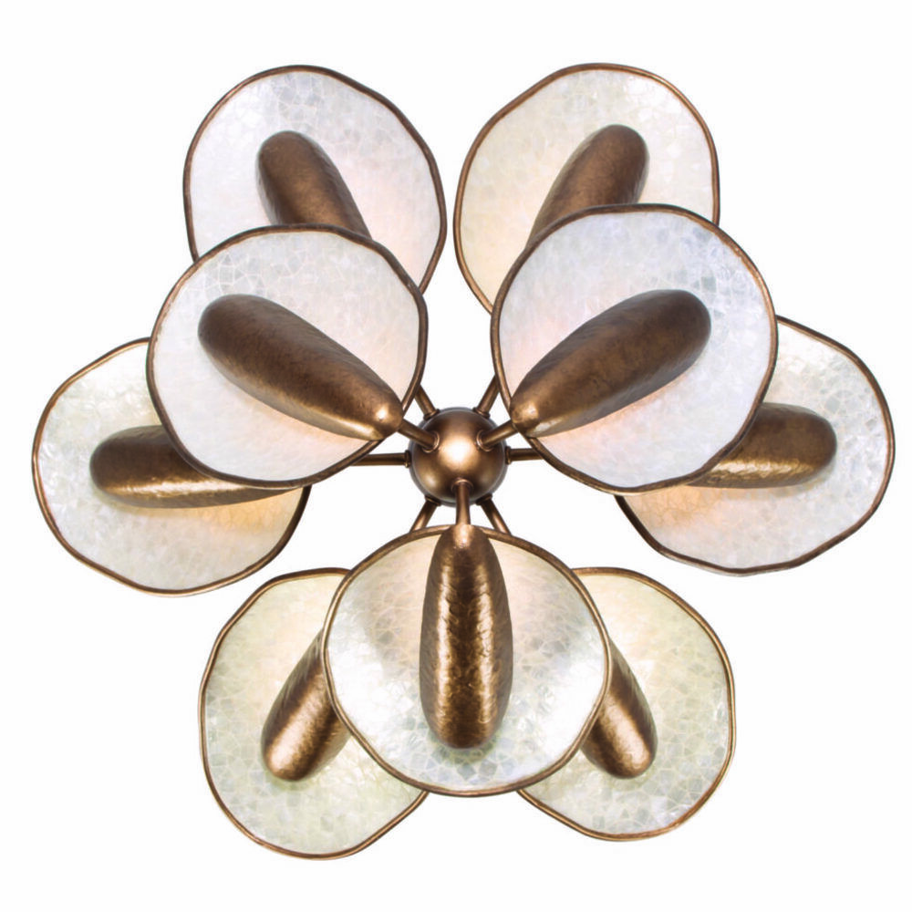 Organic pearlized antique brass 9-light chandelier with pearlized antique brass metal shade
