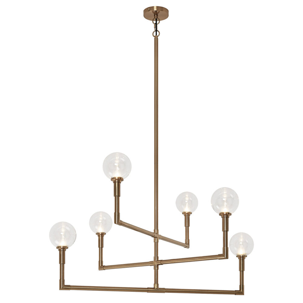 Contemporary / modern aged gold brass 6-light chandelier with clear glass shade