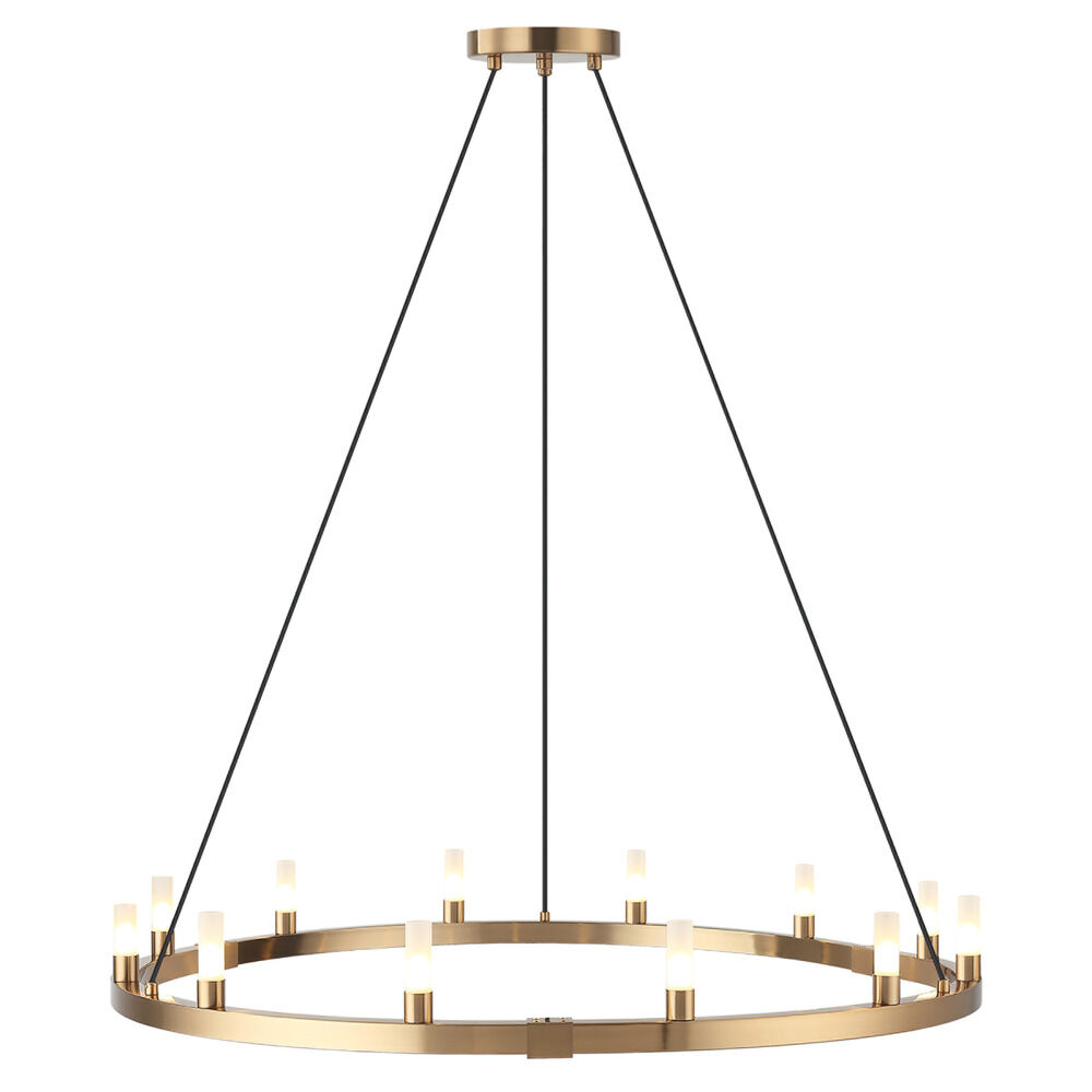 Contemporary / modern aged gold brass 12-light chandelier with opal glass shade