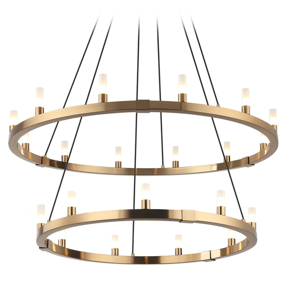 Contemporary / modern aged gold brass 21-light chandelier with opal glass shade