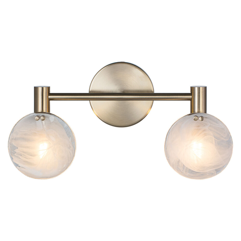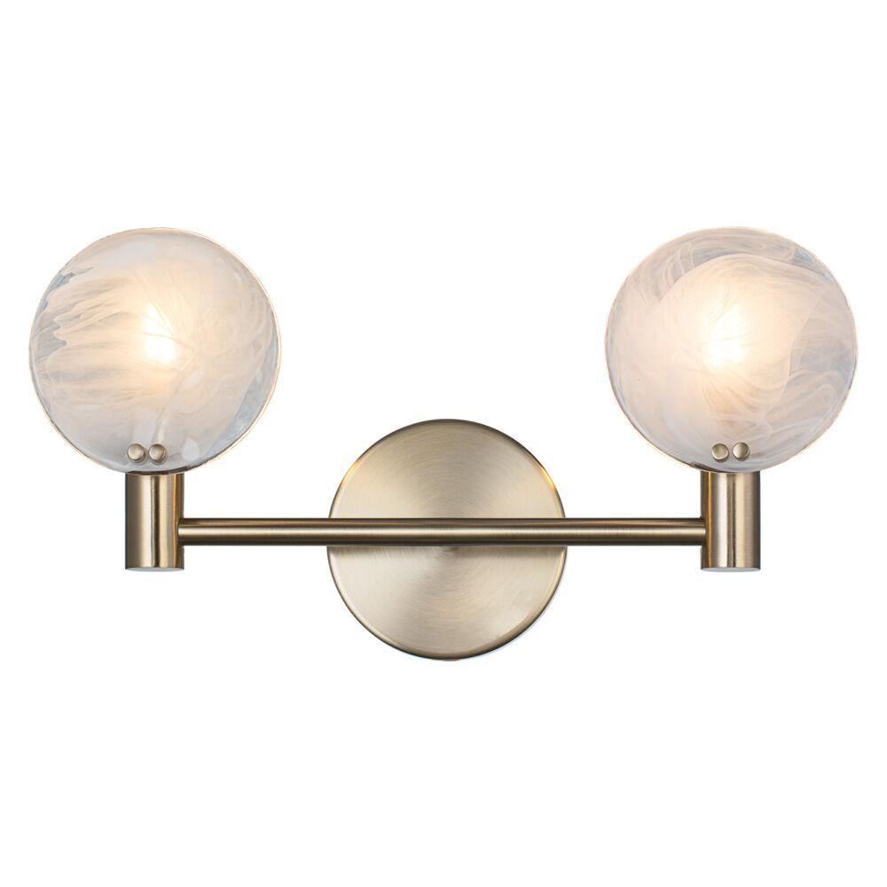 Mid-century modern champagne gold 2-light bathroom light with hand blown white strie disc glass shade