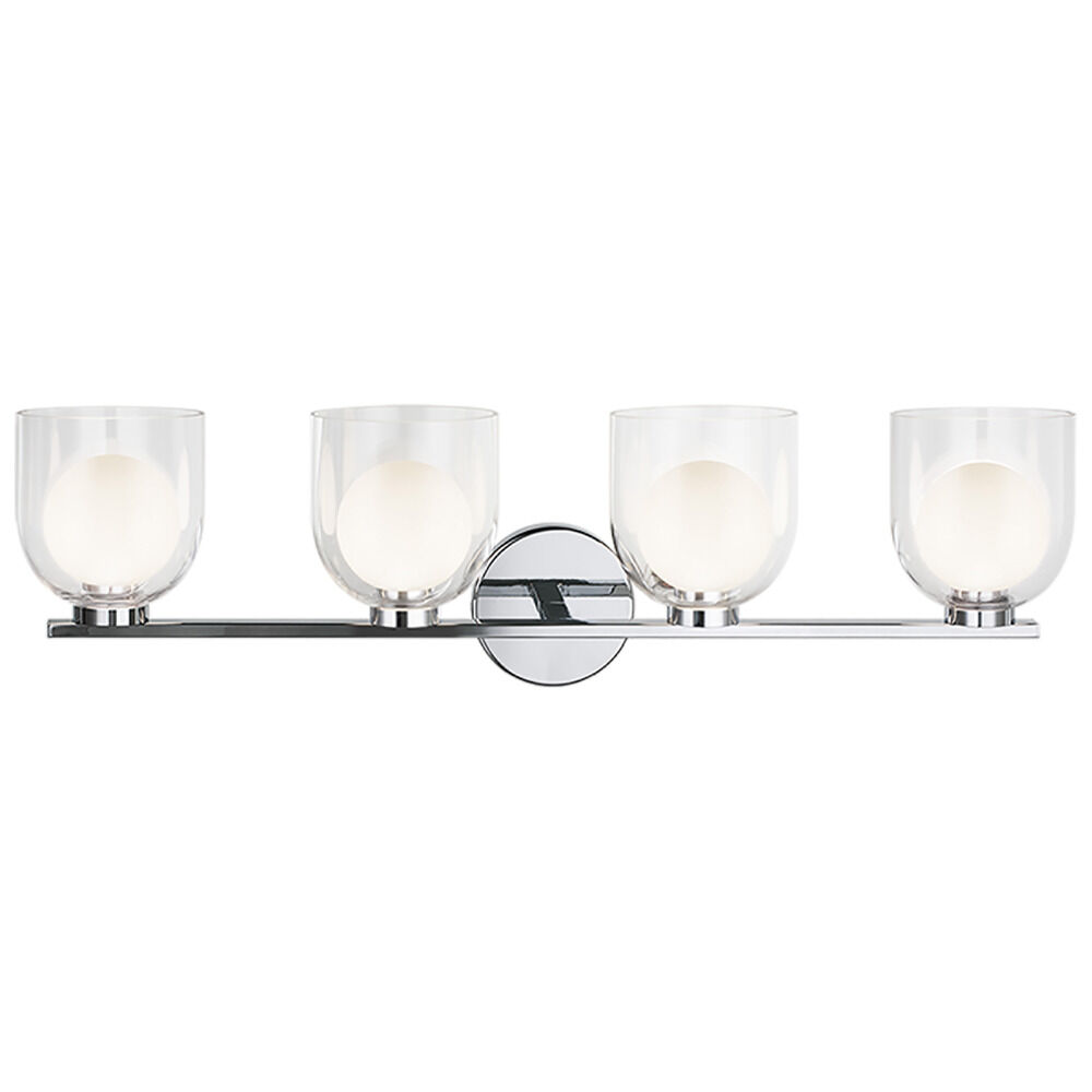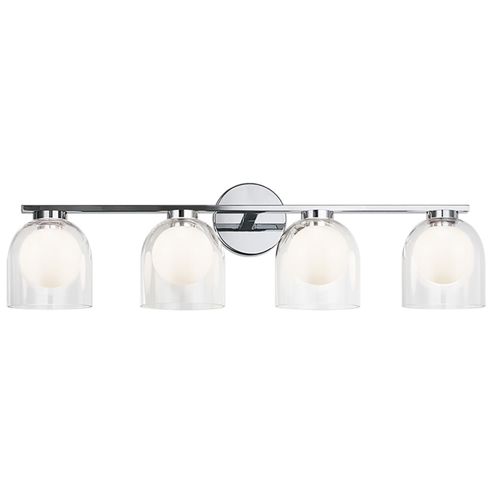 Contemporary / modern chrome 4-light bathroom light with clear & opal glass shade