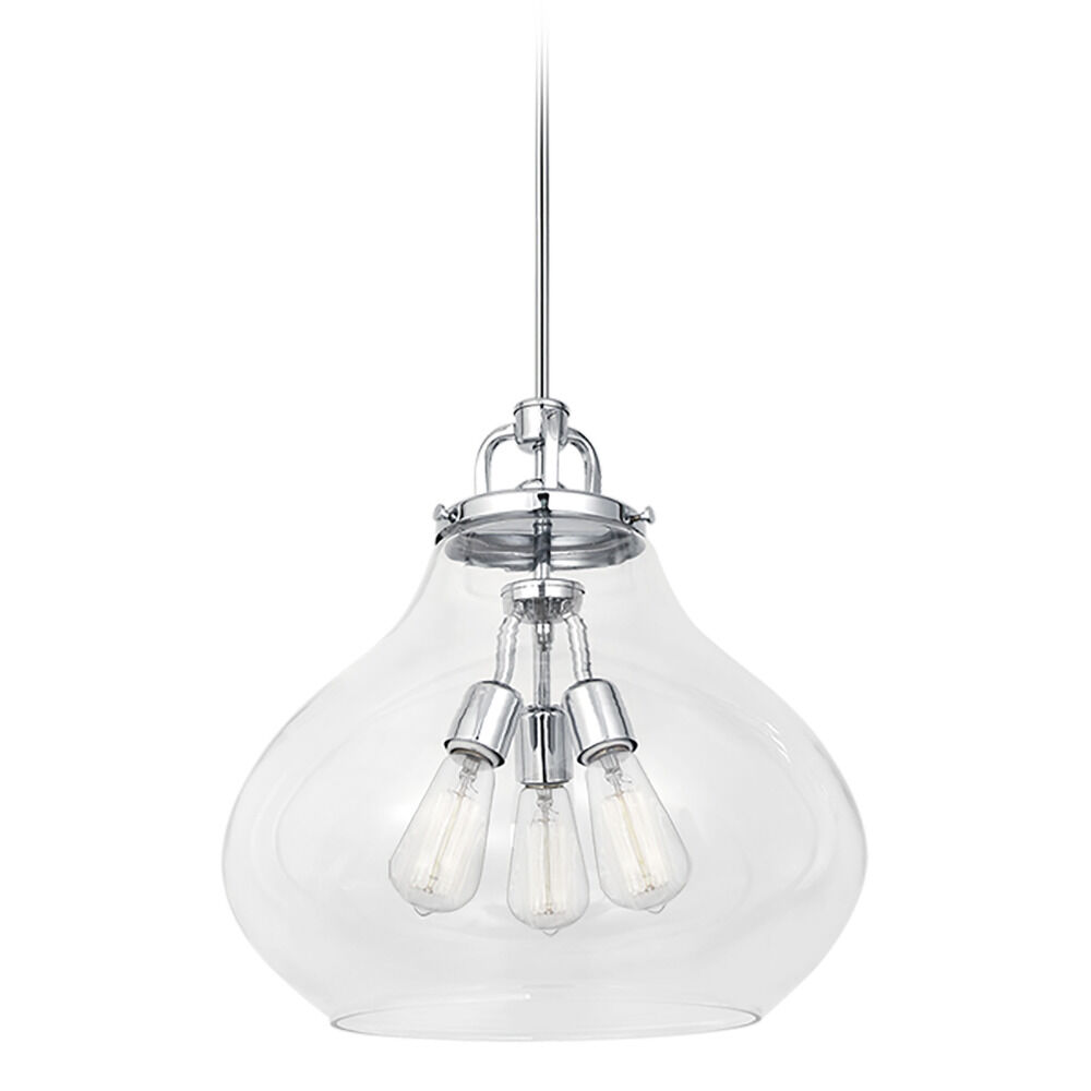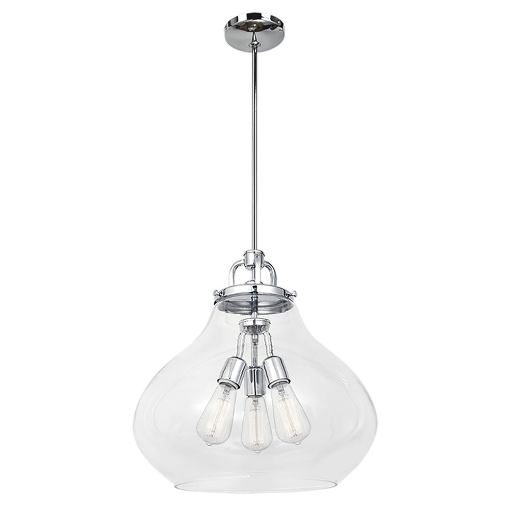 Contemporary / modern chrome 3-light pendant light with clear glass shade