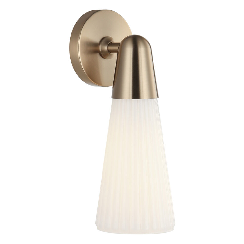 Contemporary / modern champagne gold 1-light sconce with ribbed opal ribbed glass shade