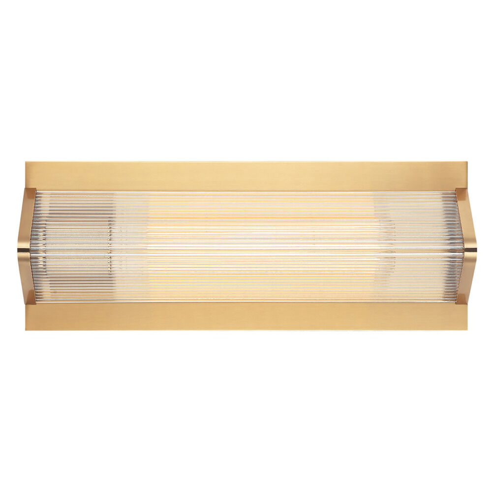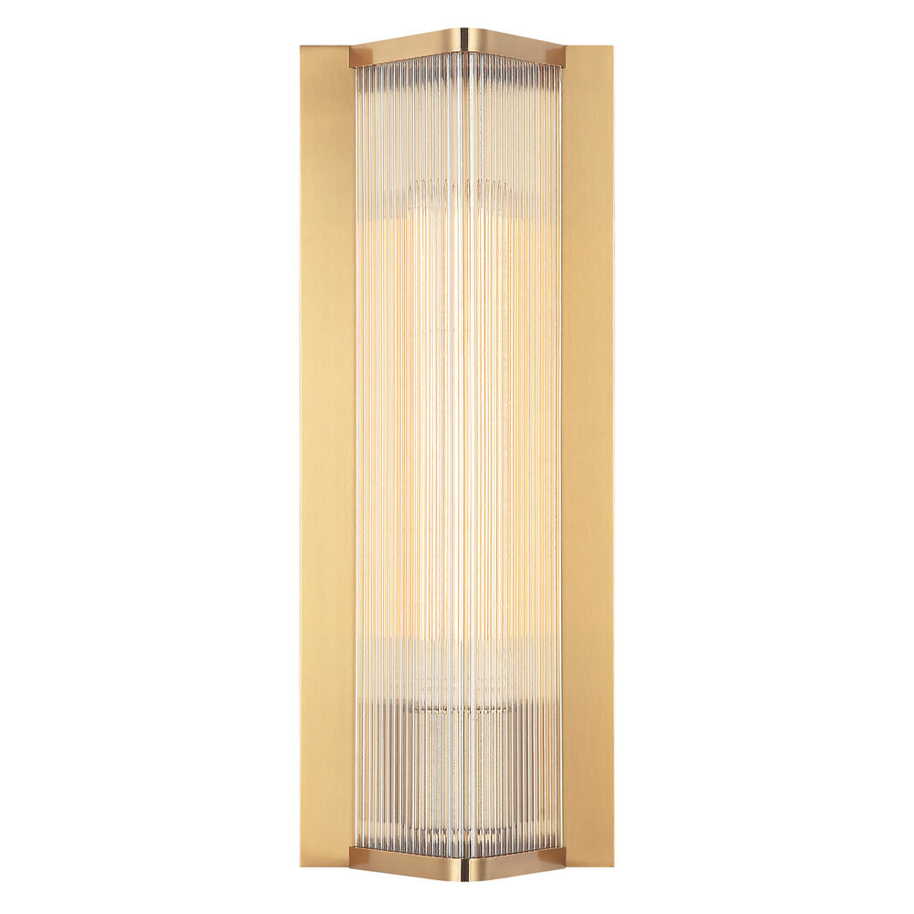 Contemporary / modern aged gold brass 1-light sconce with clear,ribbed ribbed clear glass shade