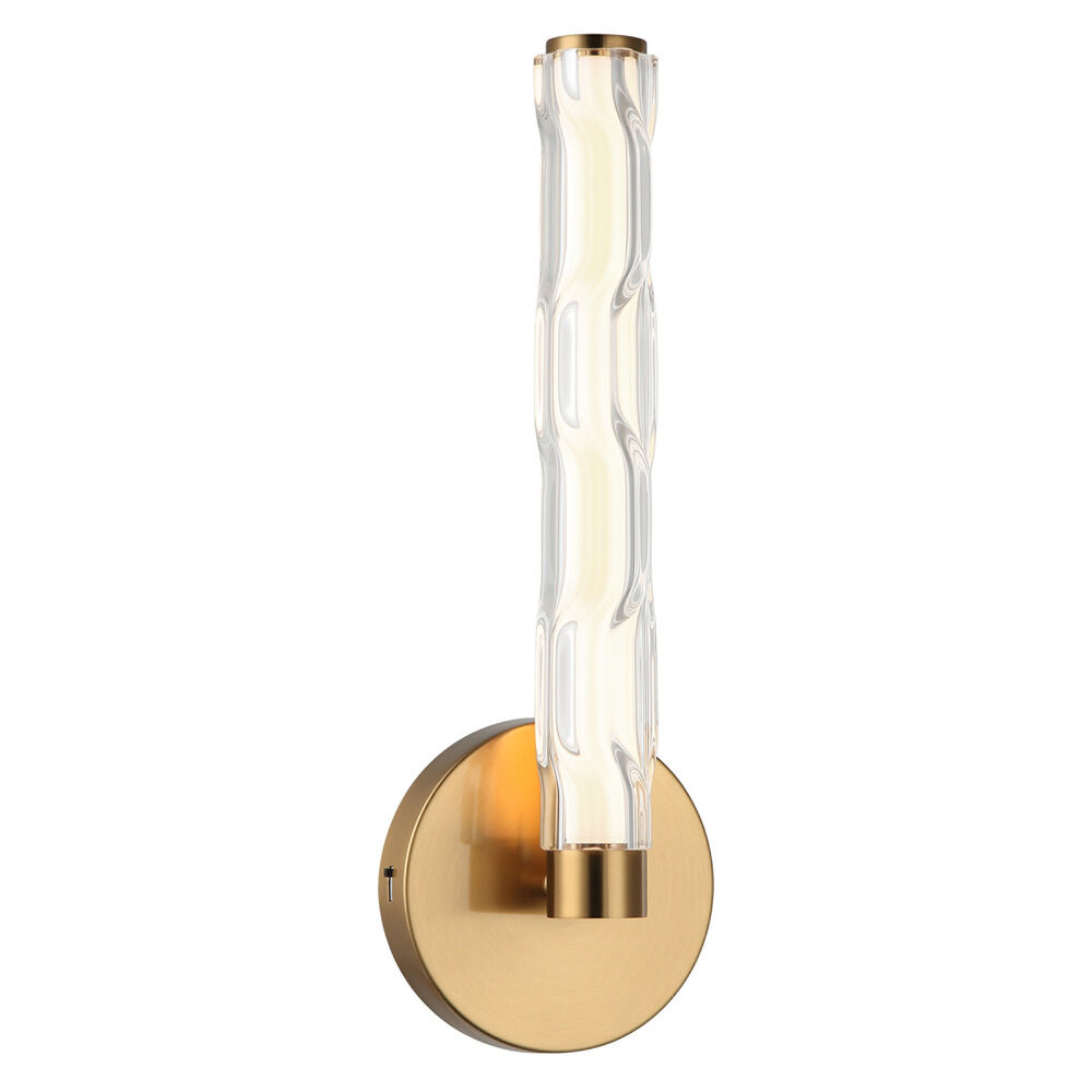 Contemporary / modern aged gold brass 1-light sconce with clear,textured wavy textured glass shade