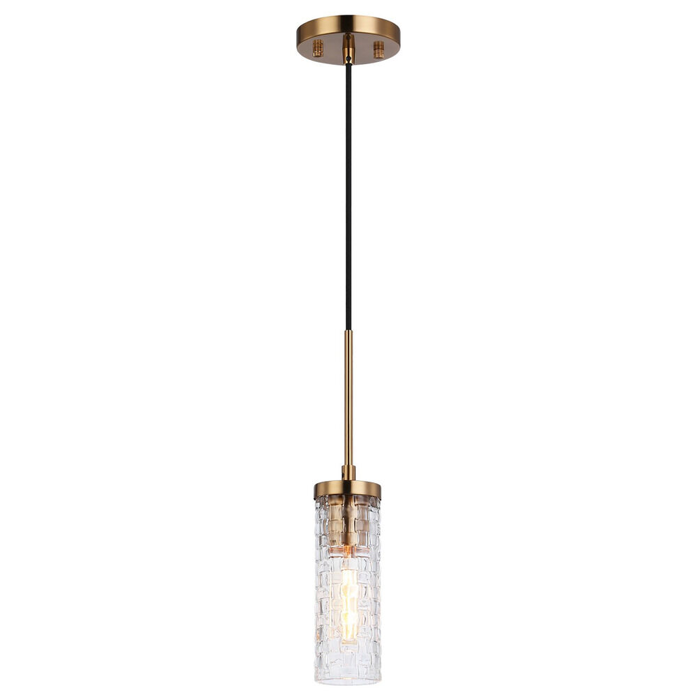 Contemporary / modern aged gold brass 1-light mini-pendant light with clear woven patterned glass shade