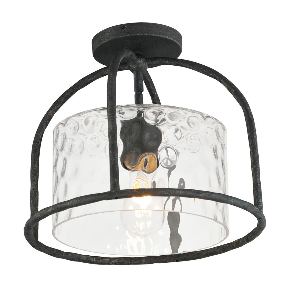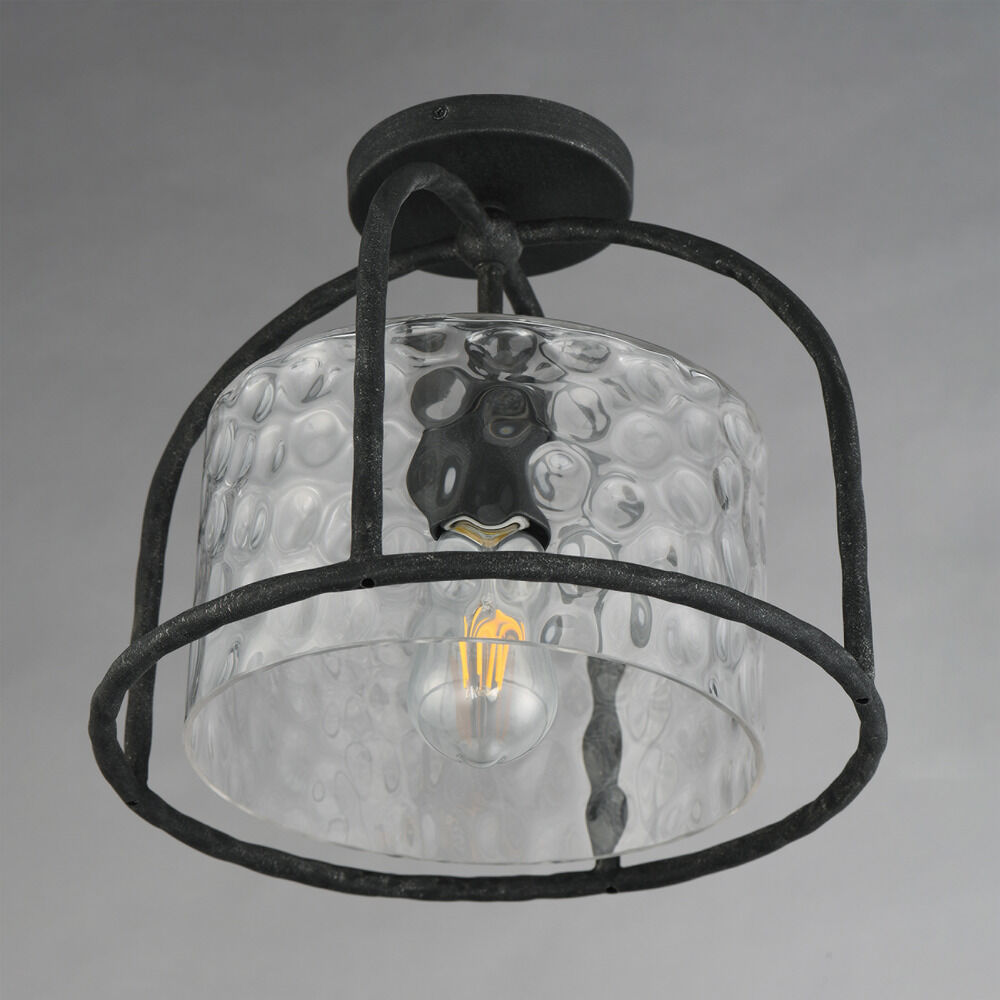 Transitional blacksmith 1-light outdoor ceiling light with clear,water water glass shade