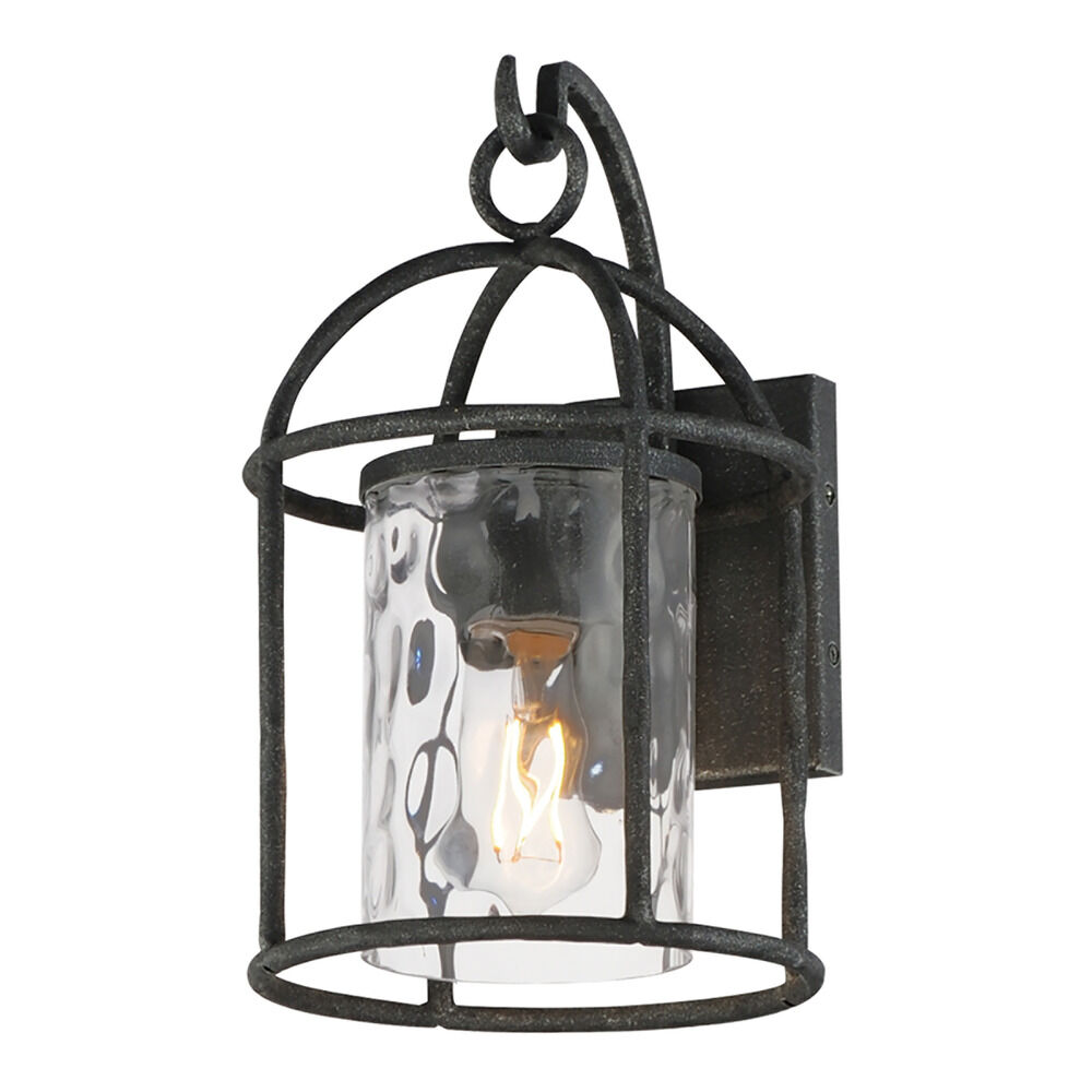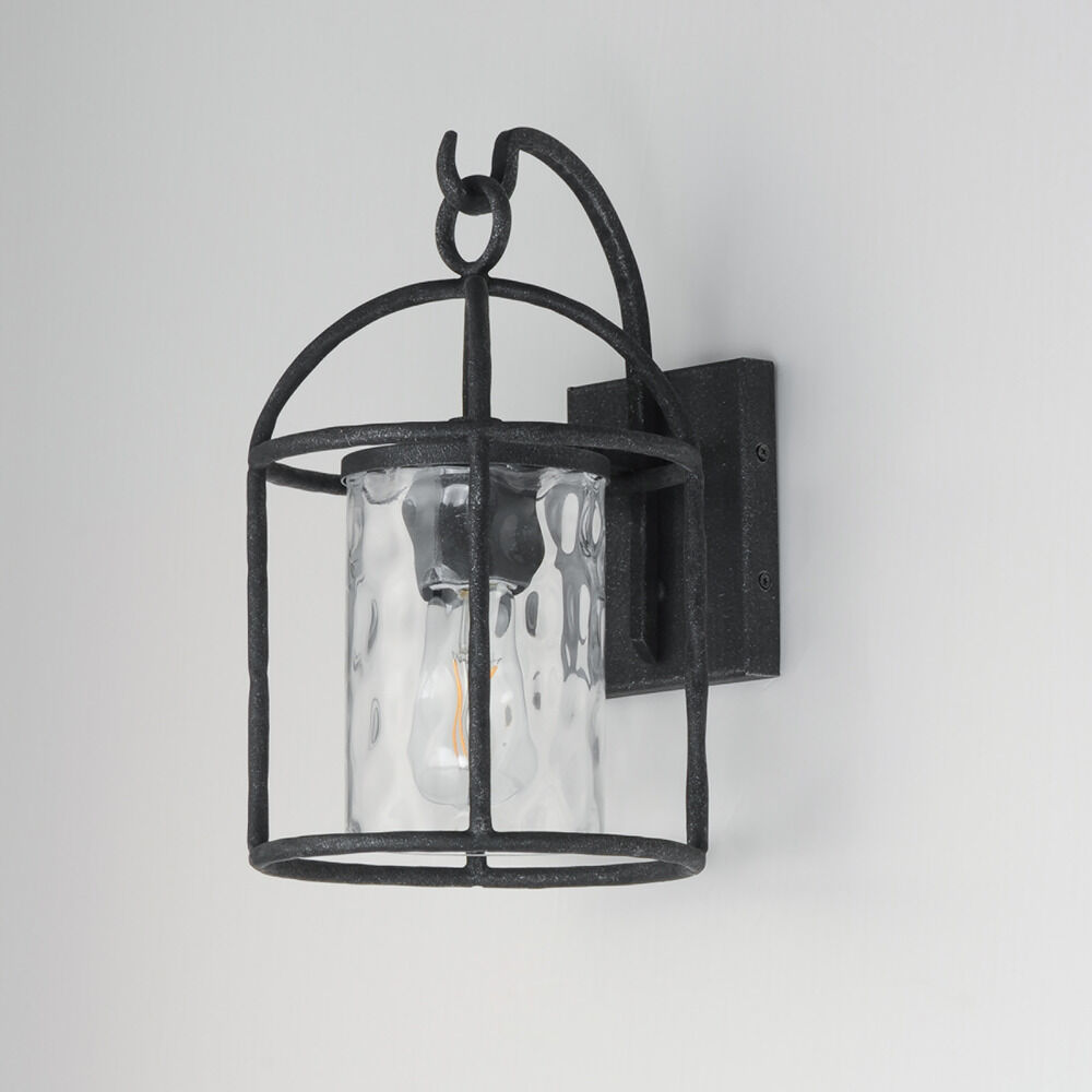 Transitional blacksmith 1-light outdoor wall light with clear,water water glass shade