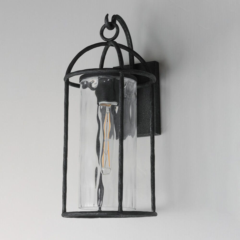 Transitional blacksmith 1-light outdoor wall light with clear,water water glass shade