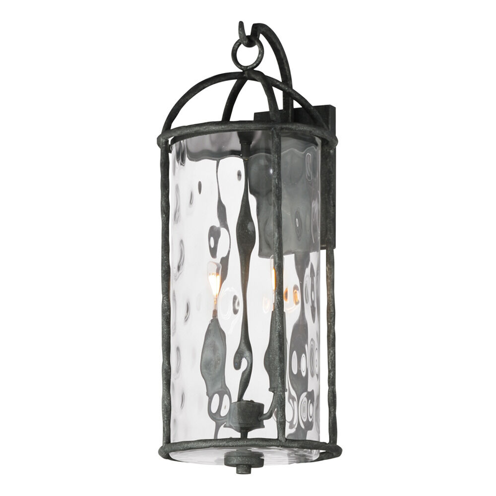 Transitional blacksmith 2-light outdoor wall light with clear,water water glass shade