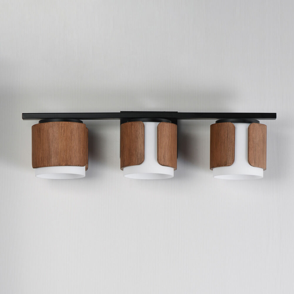 Country / cottage rich walnut & matte black 3-light bathroom light with satin white glass shade