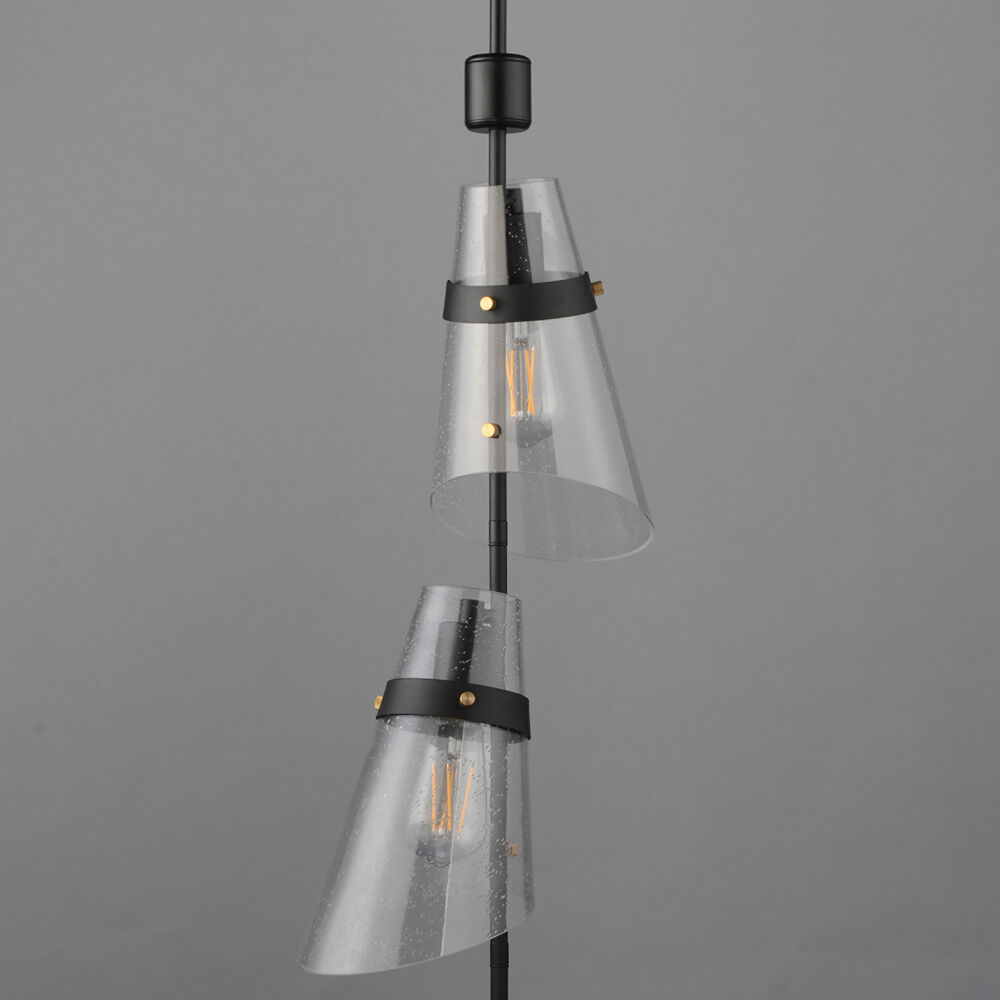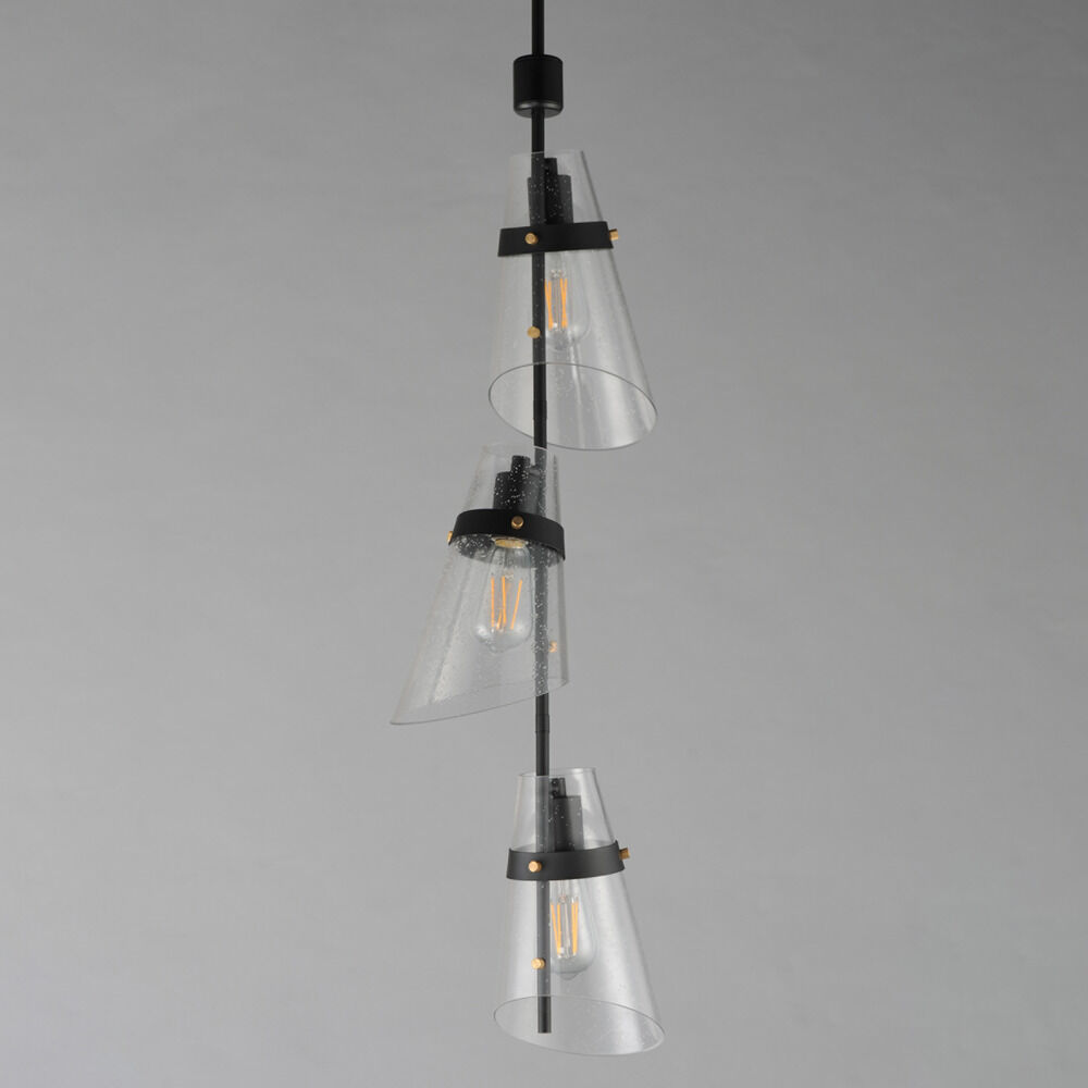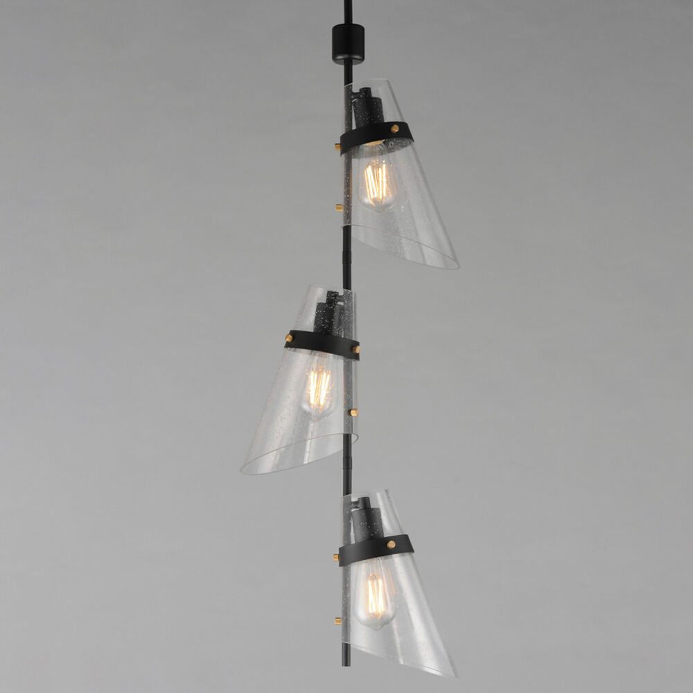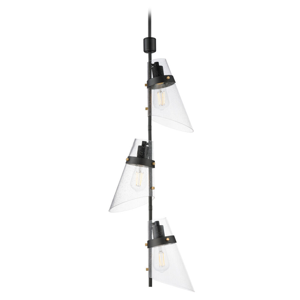 Vintage / retro / industrial dark bronze & antique brass 3-light pendant light with clear,seeded seeded glass shade