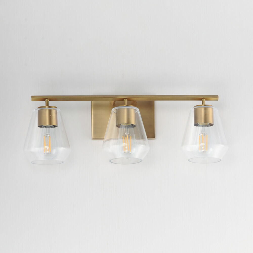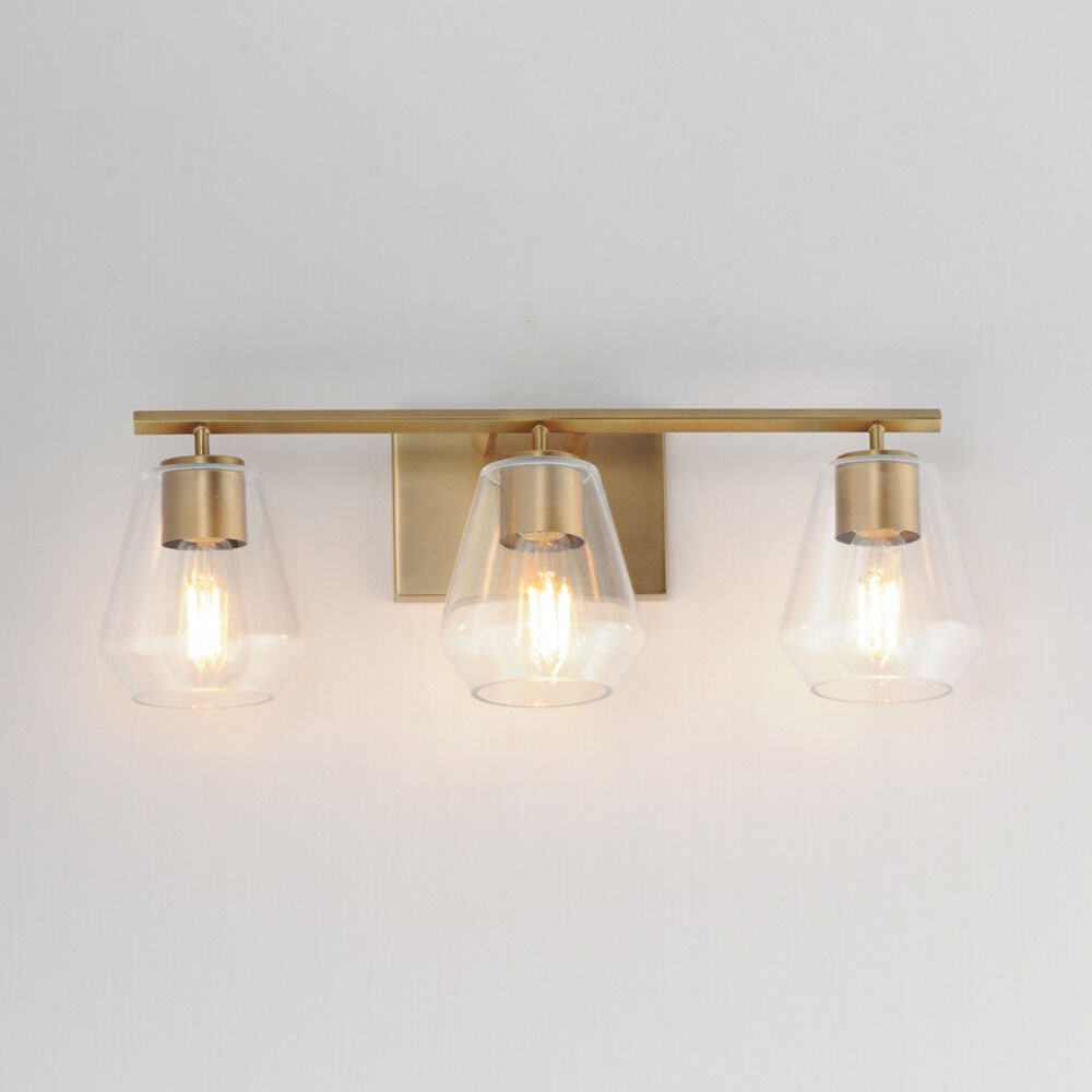 Contemporary / modern natural aged brass 3-light bathroom light with clear glass shade