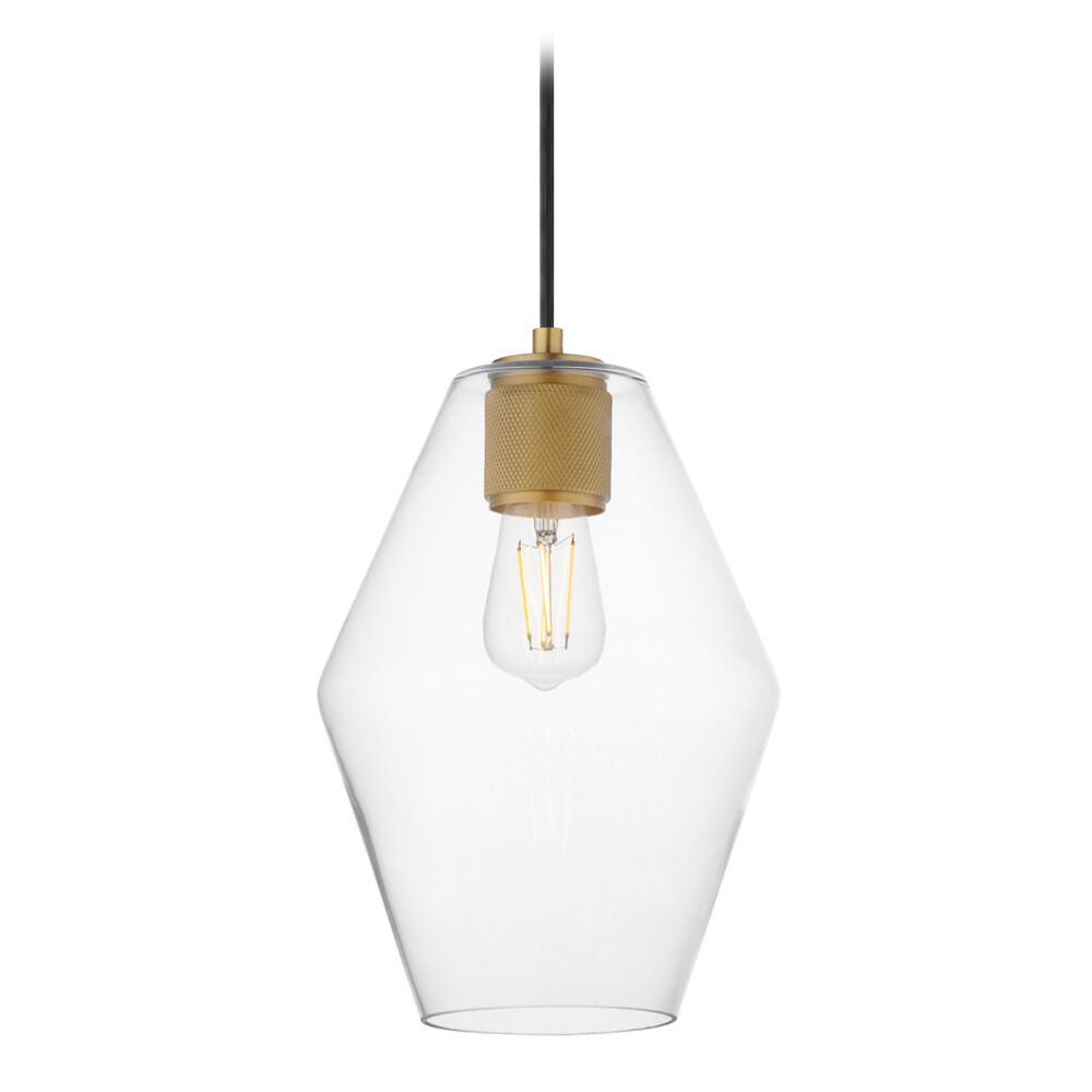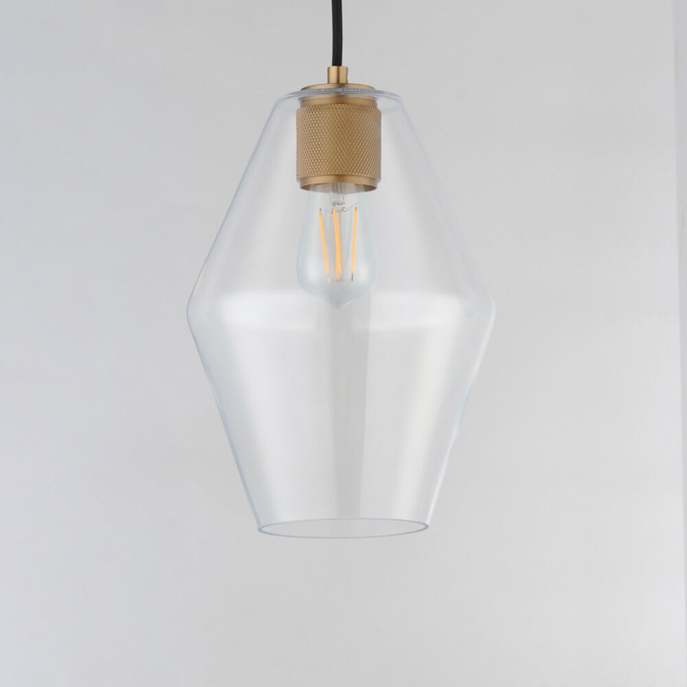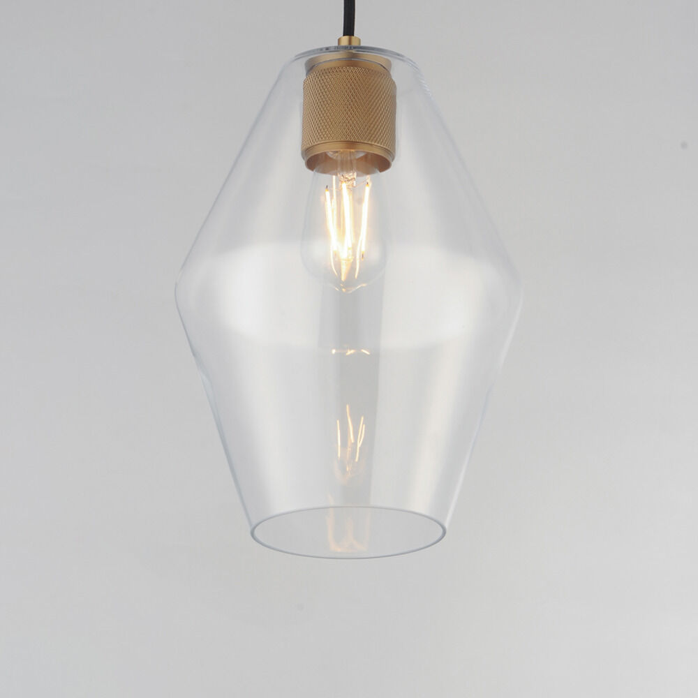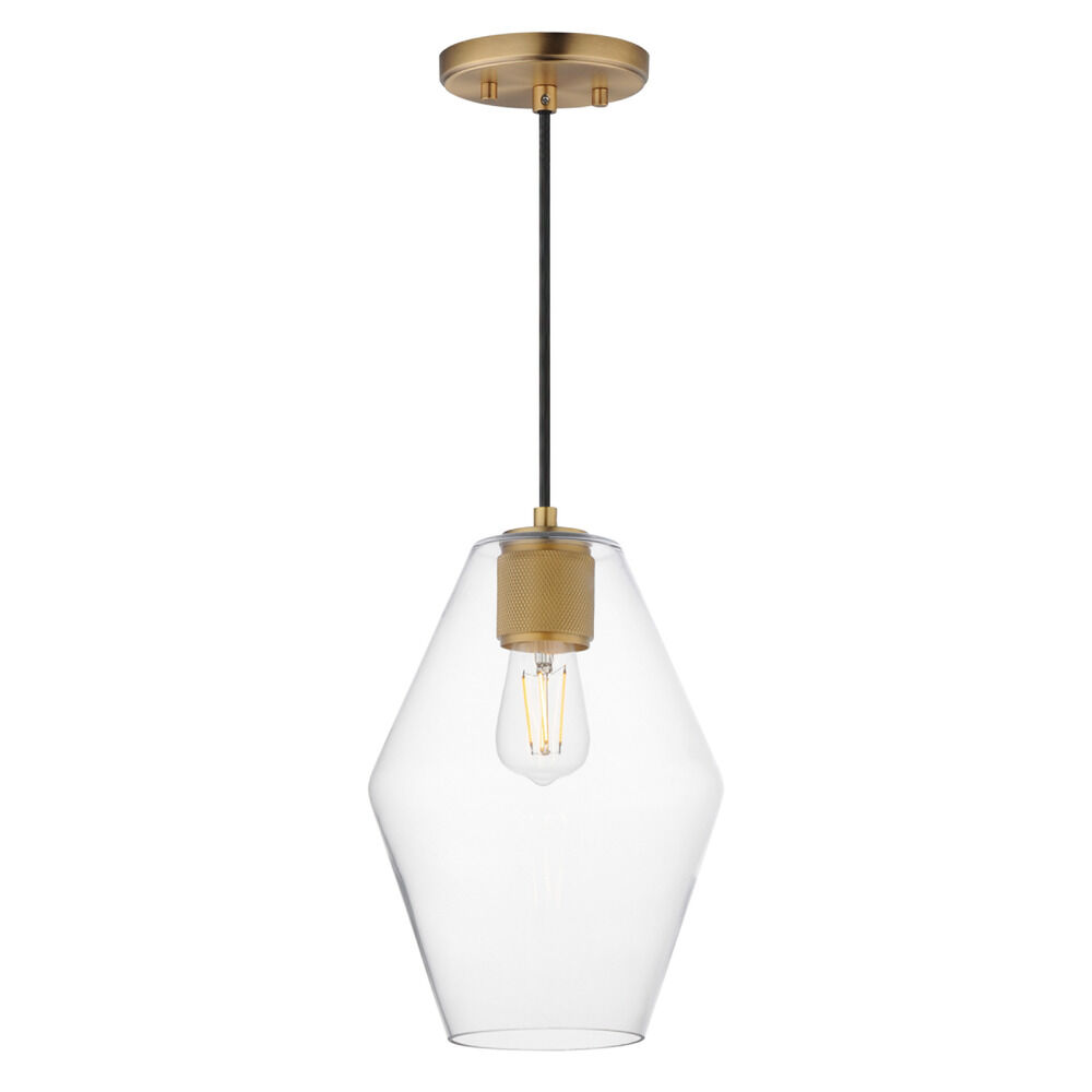 Contemporary / modern natural aged brass 1-light mini-pendant light with clear glass shade