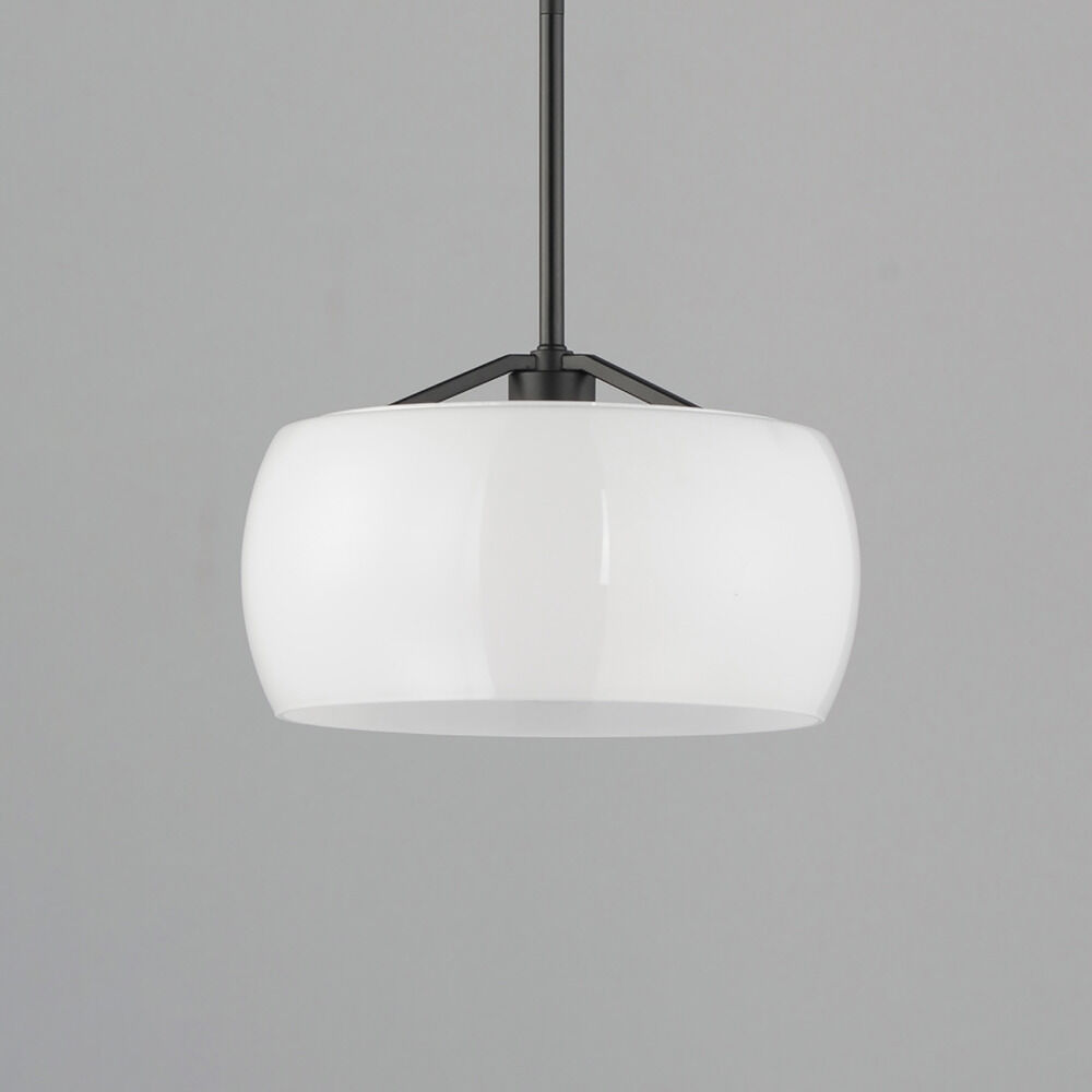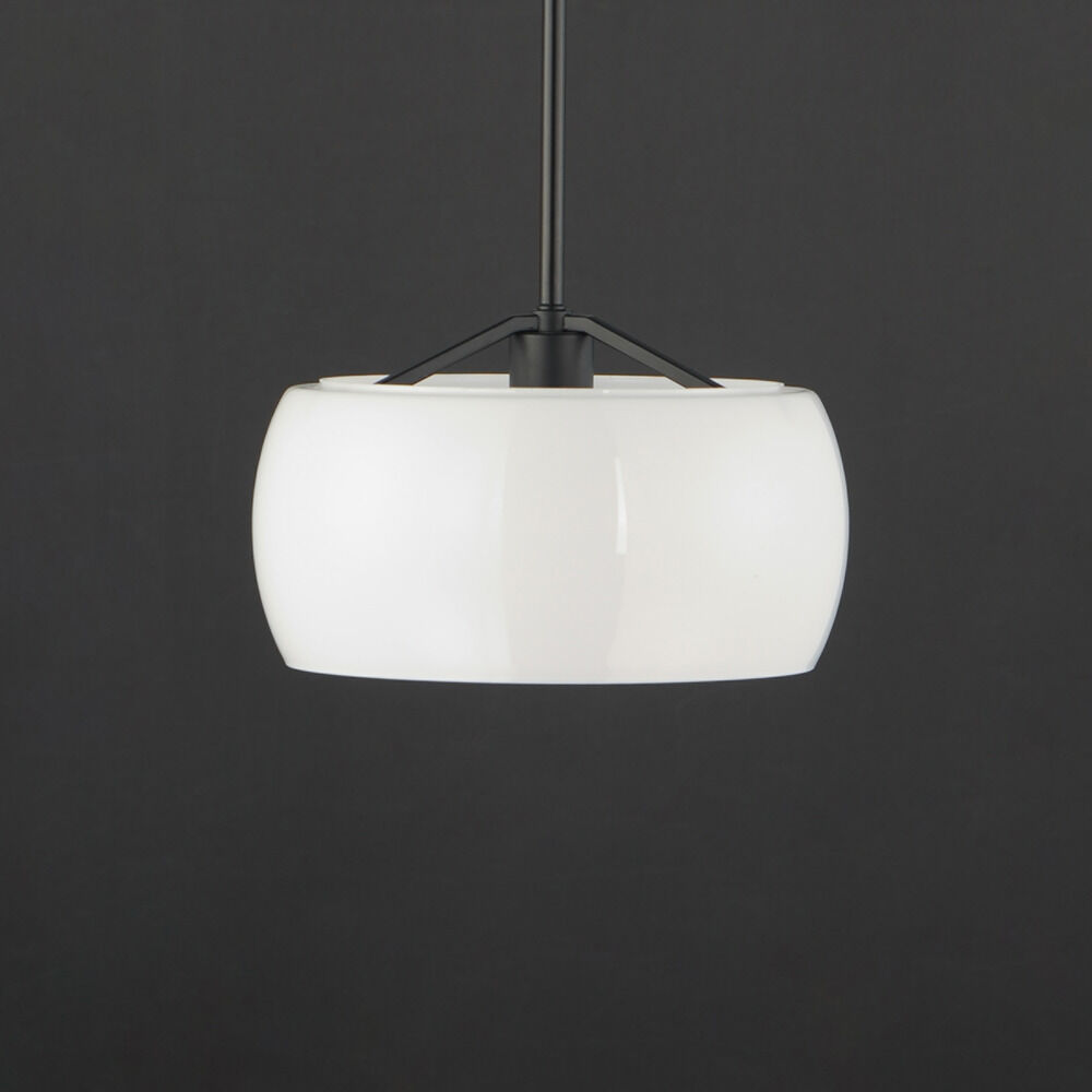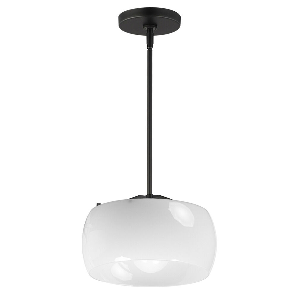 Contemporary / modern black 1-light pendant light with glossy white glass shade