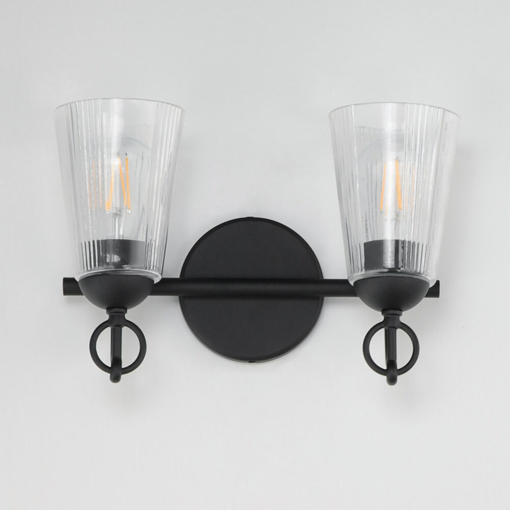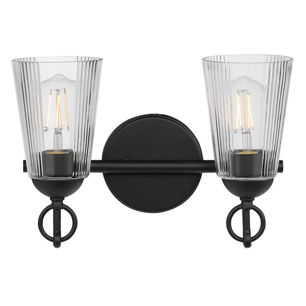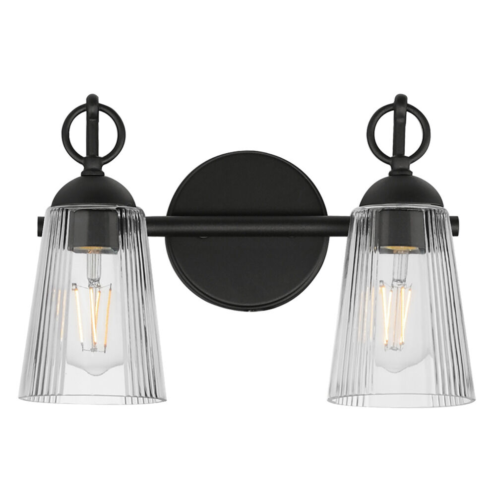 Vintage / retro / industrial black 2-light bathroom light with clear,fluted clear glass shade