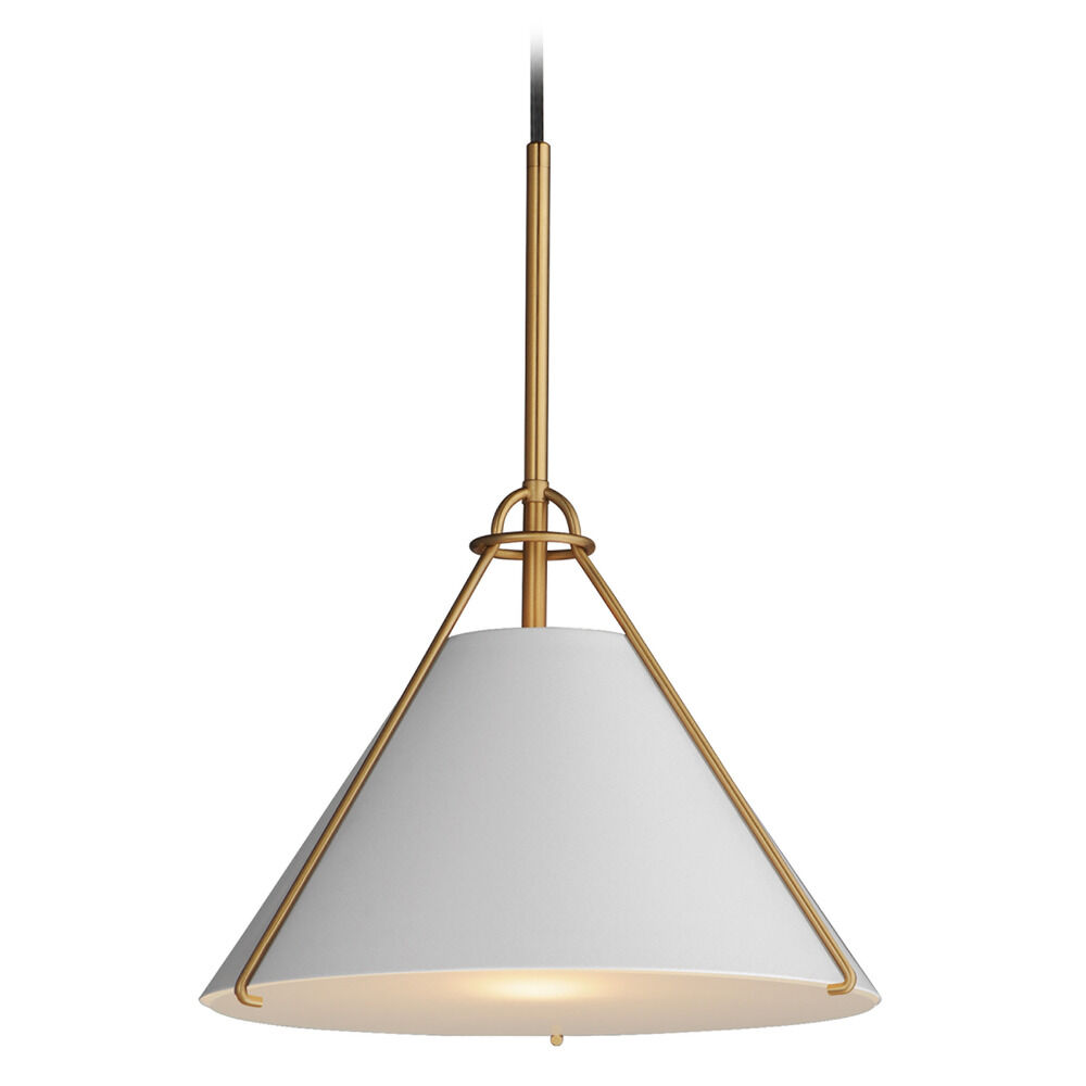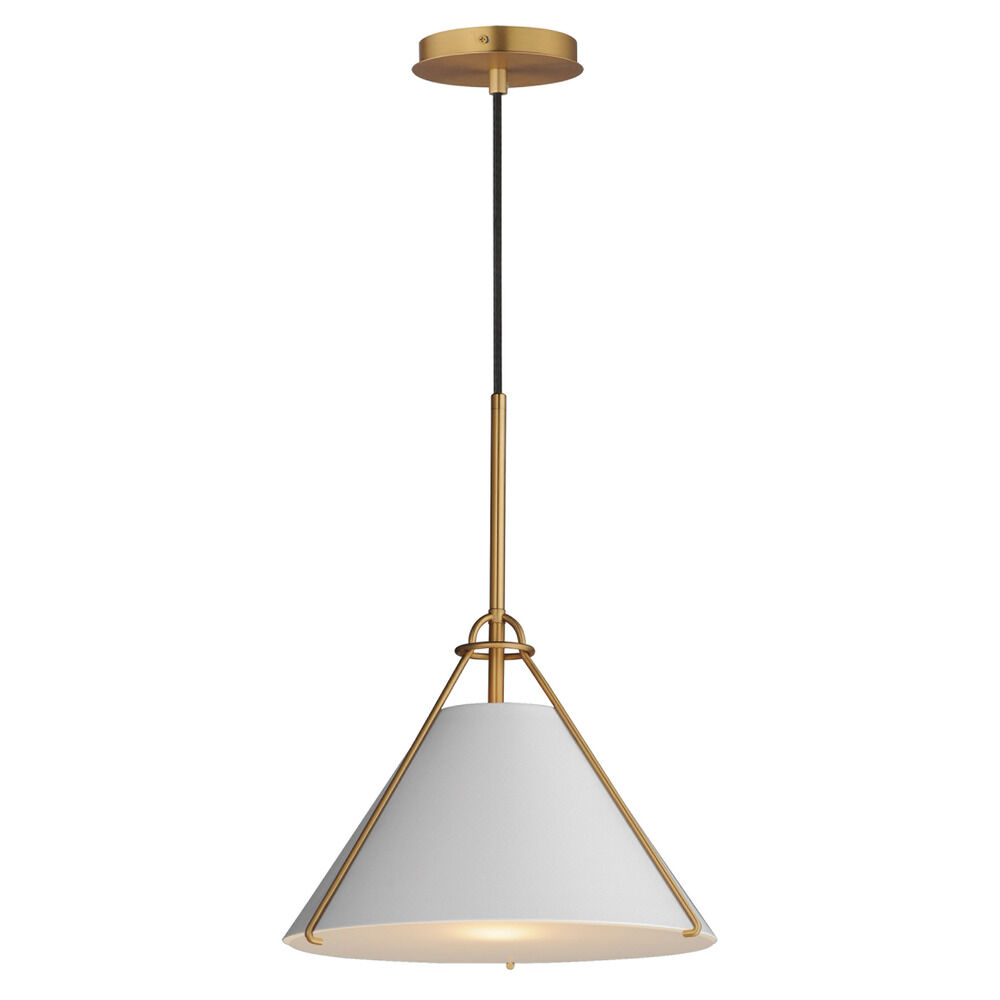 Maxim Lighting Lucas White & Natural Aged Brass Pendant Light with Conical Shade