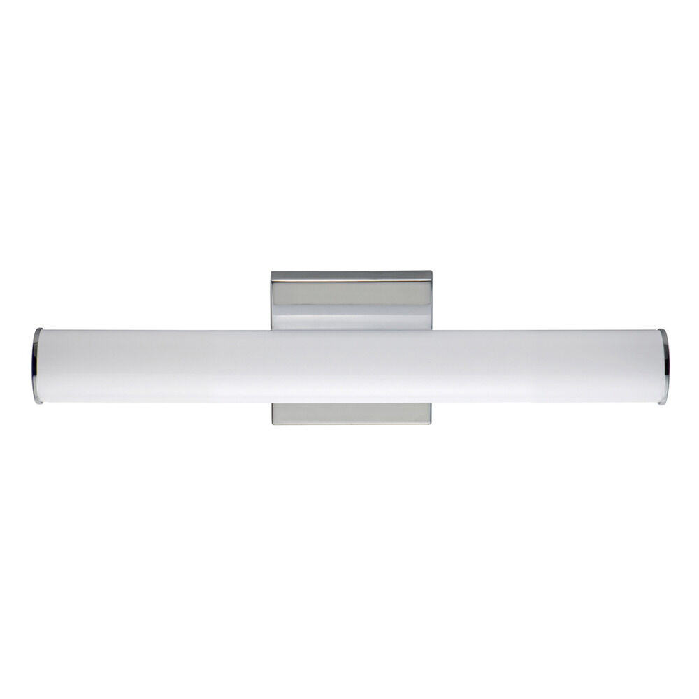 Contemporary / modern polished chrome 1-light bathroom light with matte white acrylic shade
