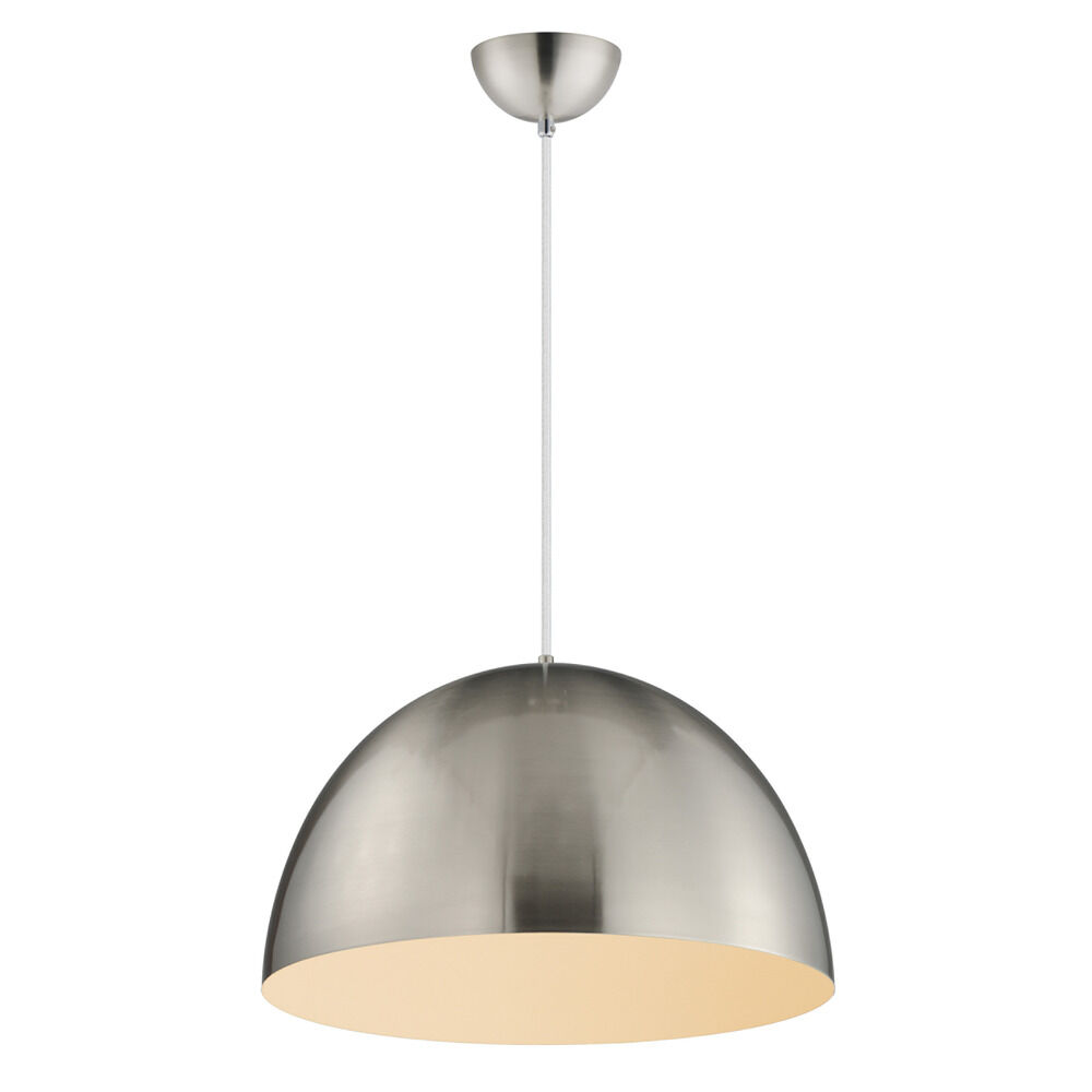 Contemporary / modern satin nickel & white 1-light pendant light with satin nickel & white metal shade