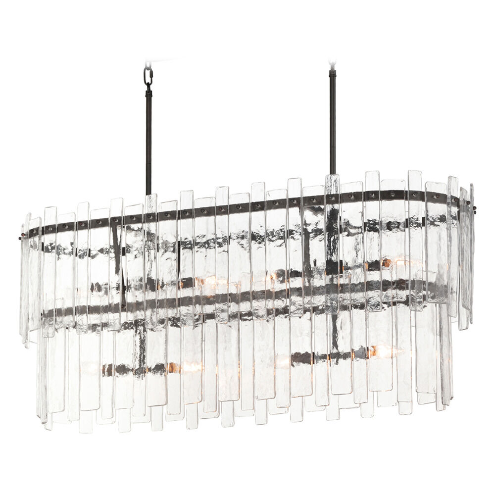 Transitional dark bronze 8-light pendant light with clear artisan glass shade