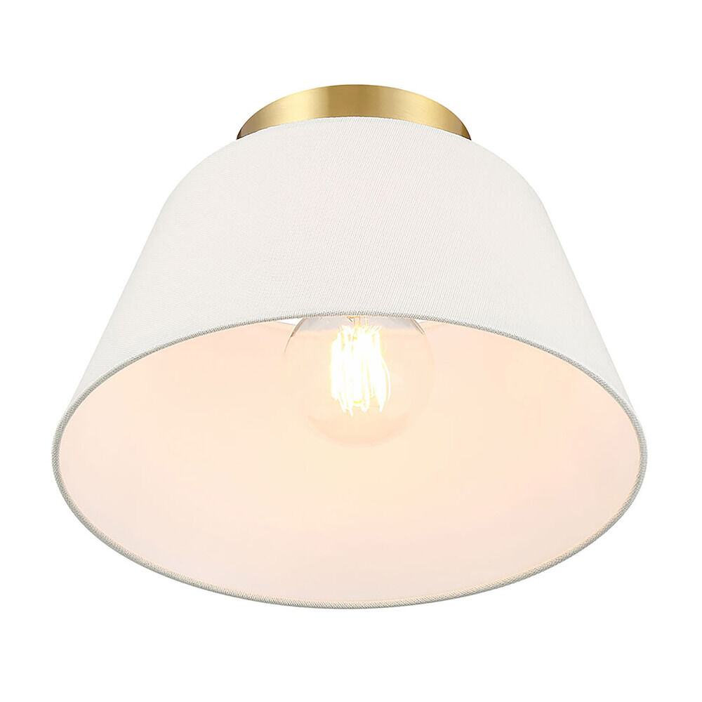 The 1-Light Semi-Flush Mount by Meridian blends classic elegance with a warm, modern finish. Featuring a crisp white linen shade, it provides soft, diffused light that enhances the atmosphere of any room. The Natural Brass finish adds a touch of warmth and sophistication, making it a perfect fit for transitional, modern, or traditional interiors.