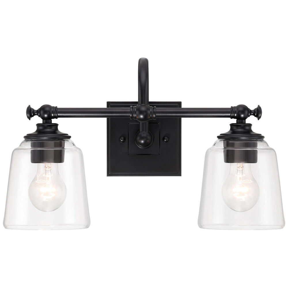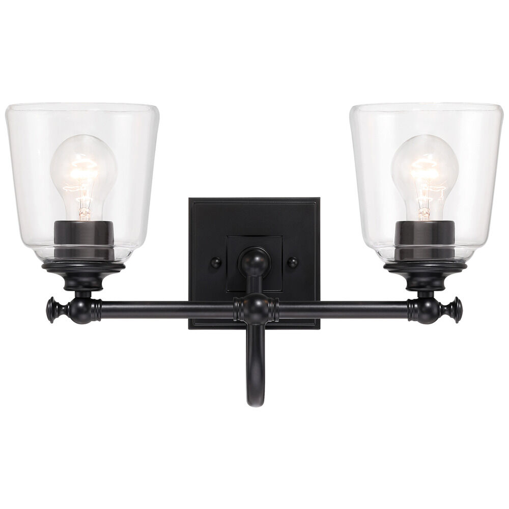 Transitional coal black 2-light bathroom light with clear glass shade
