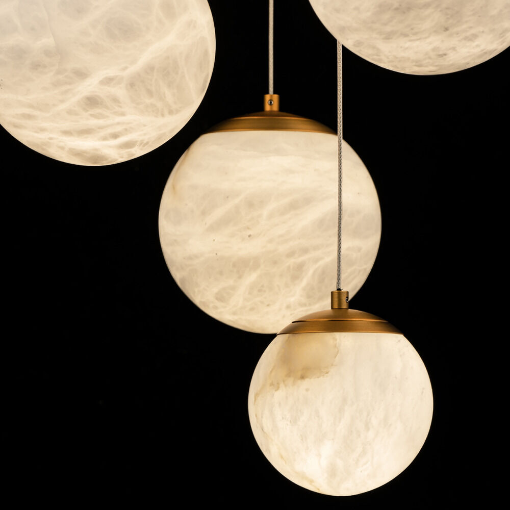 Contemporary / modern aged brass 13-light pendant light with alabaster shade