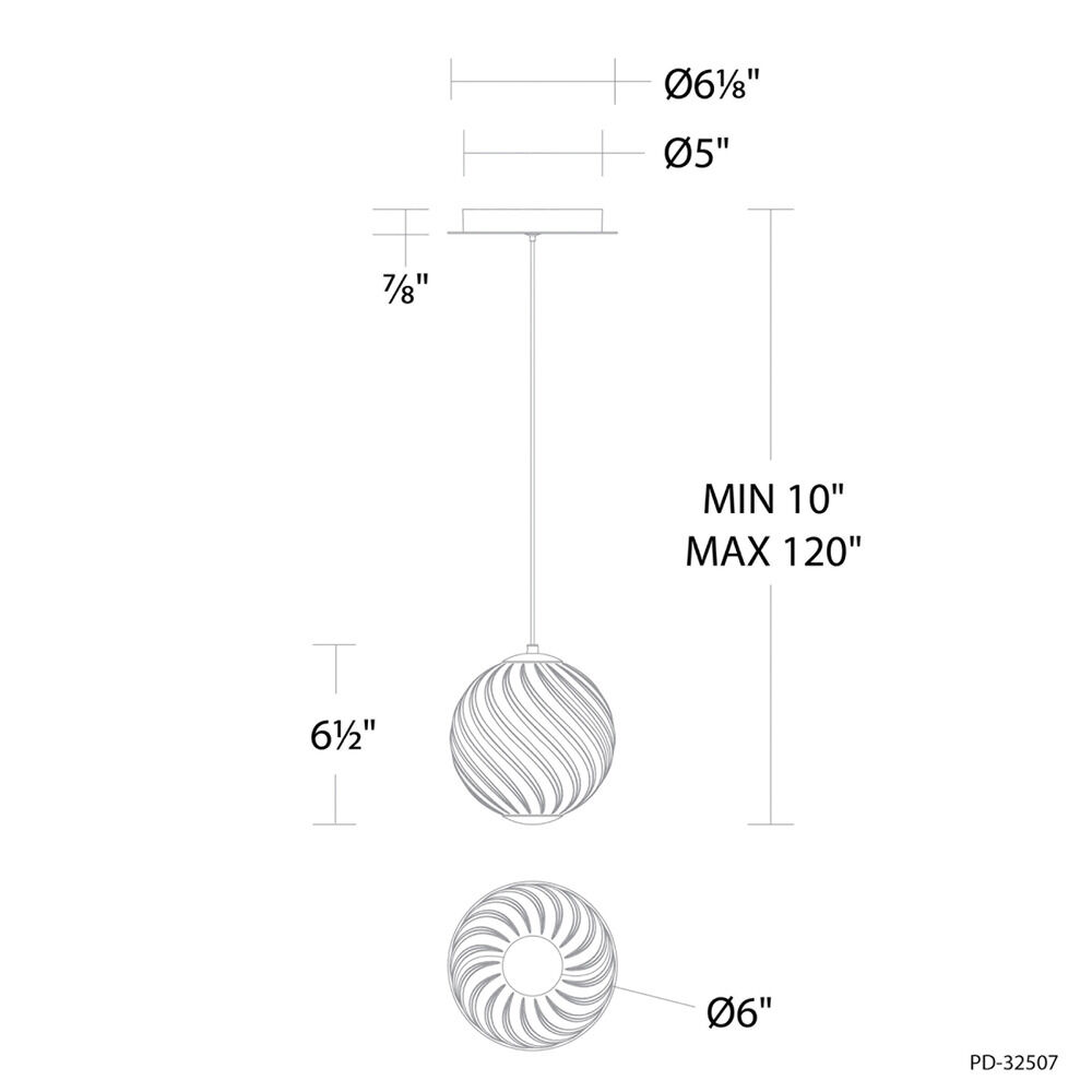 The following are detailed specifications about the Modern Forms Swirly Brushed Nickel LED Mini-Pendant Light with Globe Shade.