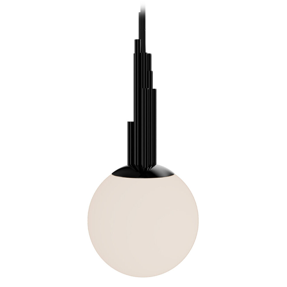 Contemporary / modern polished black nickel 1-light mini-pendant light with mouth blown opal glass shade