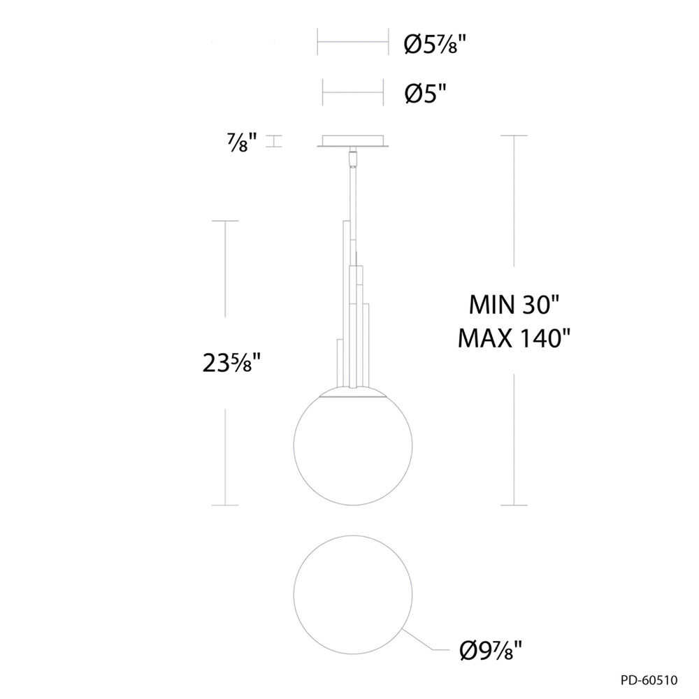 The following are detailed specifications about the Modern Forms Sybil Polished Black Nickel LED Mini-Pendant Light with Globe Shade.