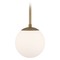 Mid-century modern aged brass 1-light mini-pendant light with etched,mouth blown opal glass shade