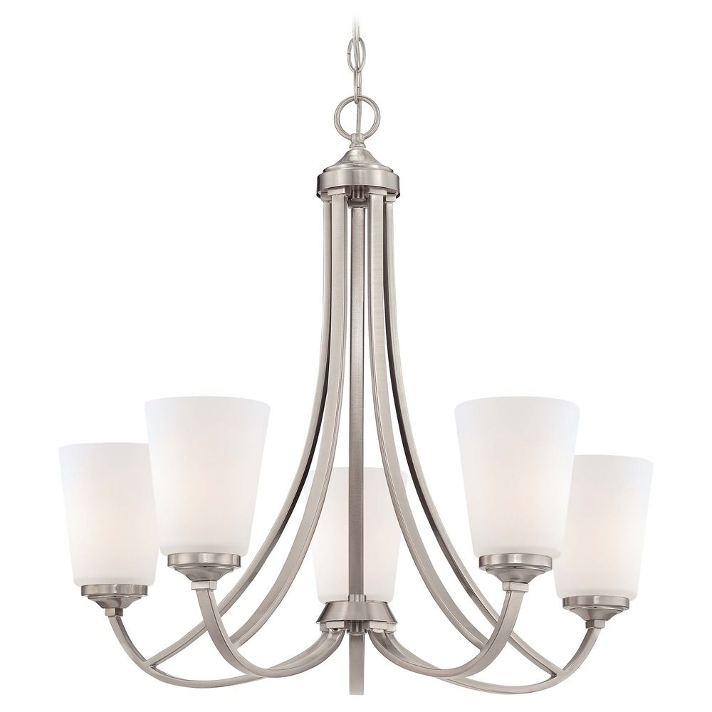 Transitional brushed nickel 5-light chandelier with etched opal glass shade