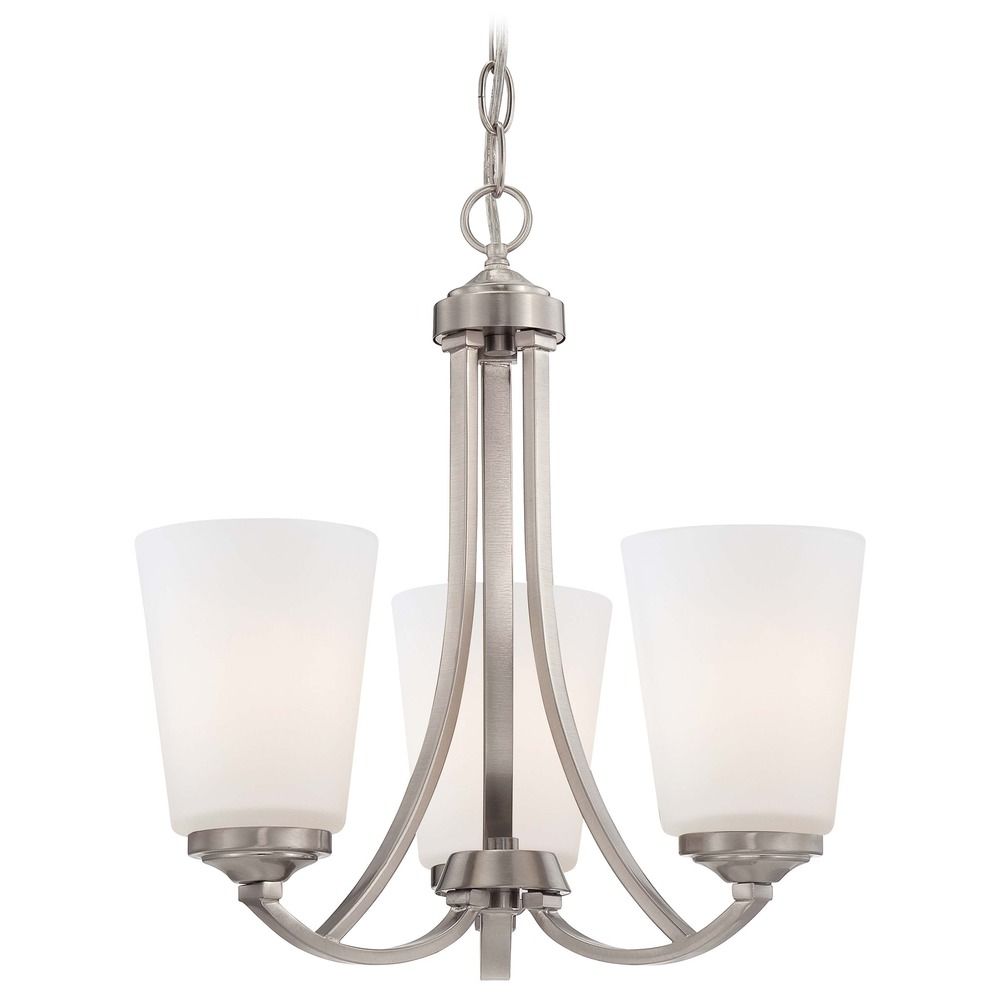 Contemporary / modern brushed nickel 3-light chandelier with etched opal glass shade