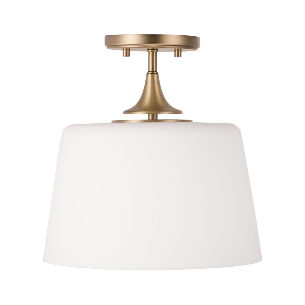 Spruce up your farmhouse-style home with the Presley Dual Mount Pendant by HomePlace by Capital Lighting. Presley features sleek contours and flared accents, giving this piece a more contemporary, updated look. This convertible fixture also includes a classic Aged Brass finish. Light bulb not included. This fixture can be mounted as either a hanging pendant or as a semi-flush mount. Rated for use in Dry locations only.