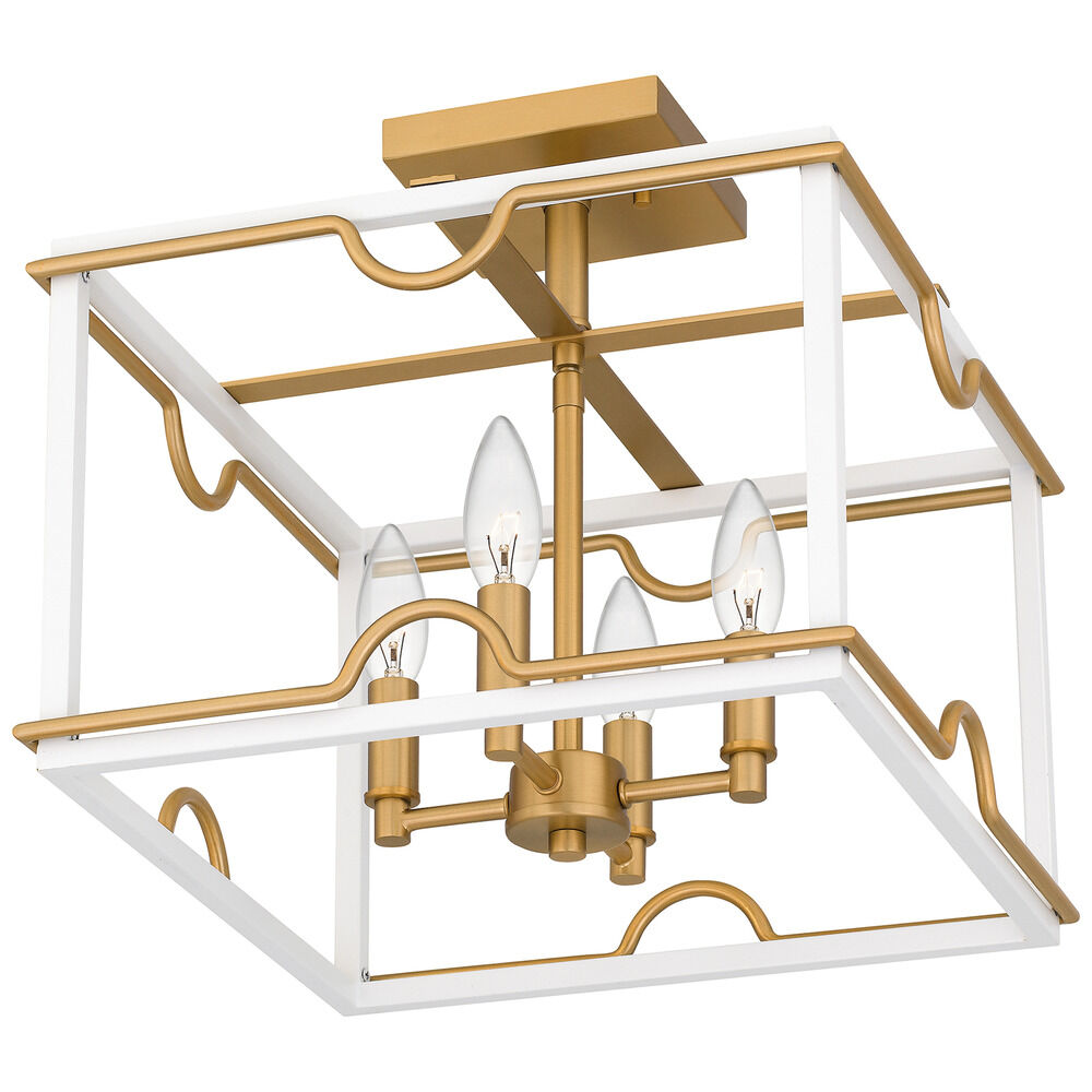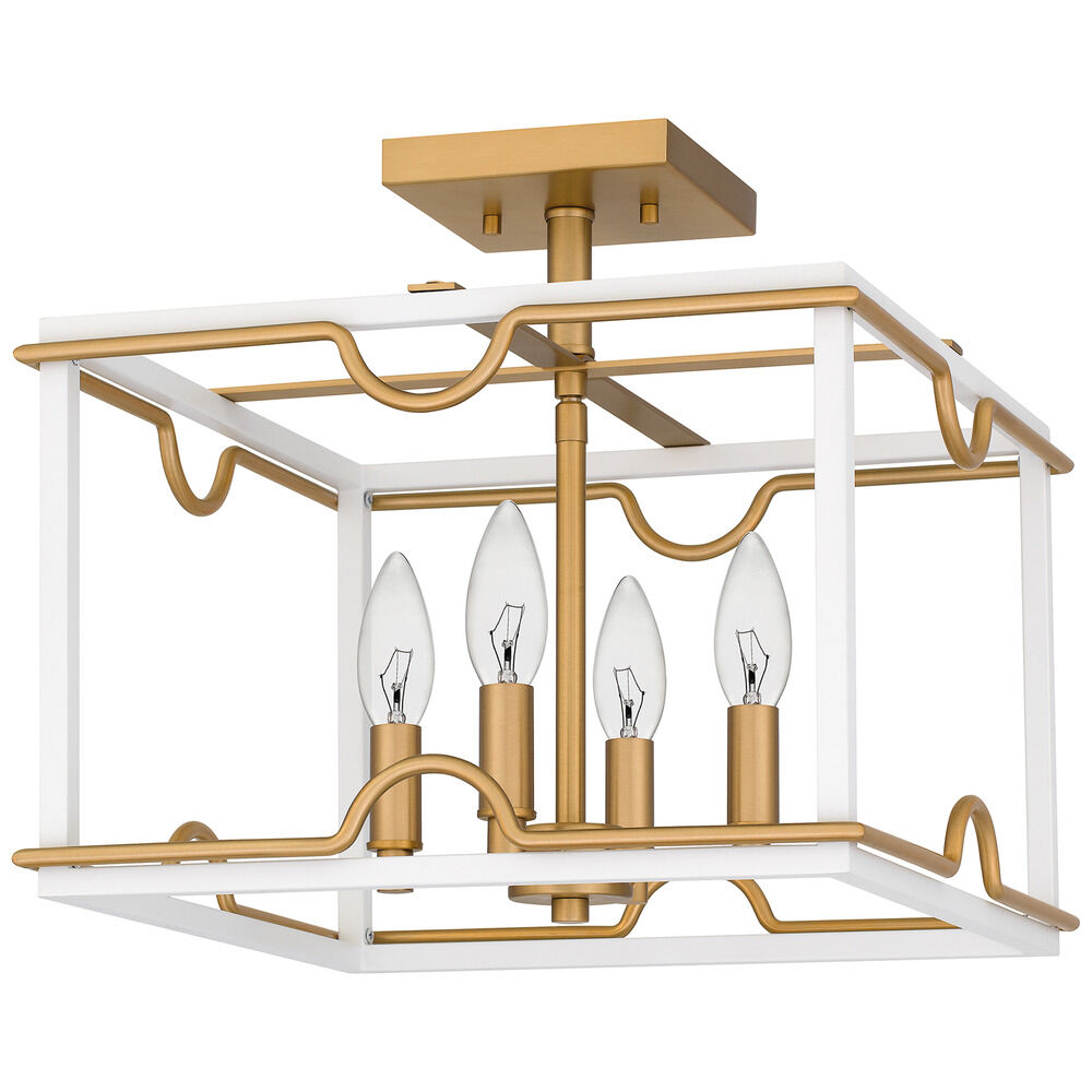 Contemporary / modern matte white & brushed weathered brass 4-light indoor ceiling light