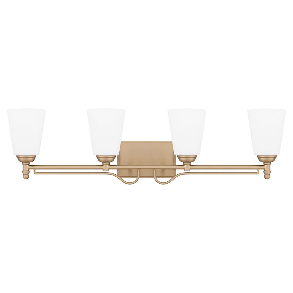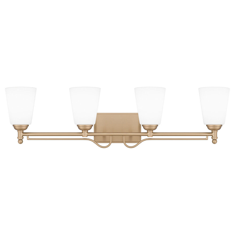 Transitional bronze gold 4-light bathroom light with etched opal etched glass shade