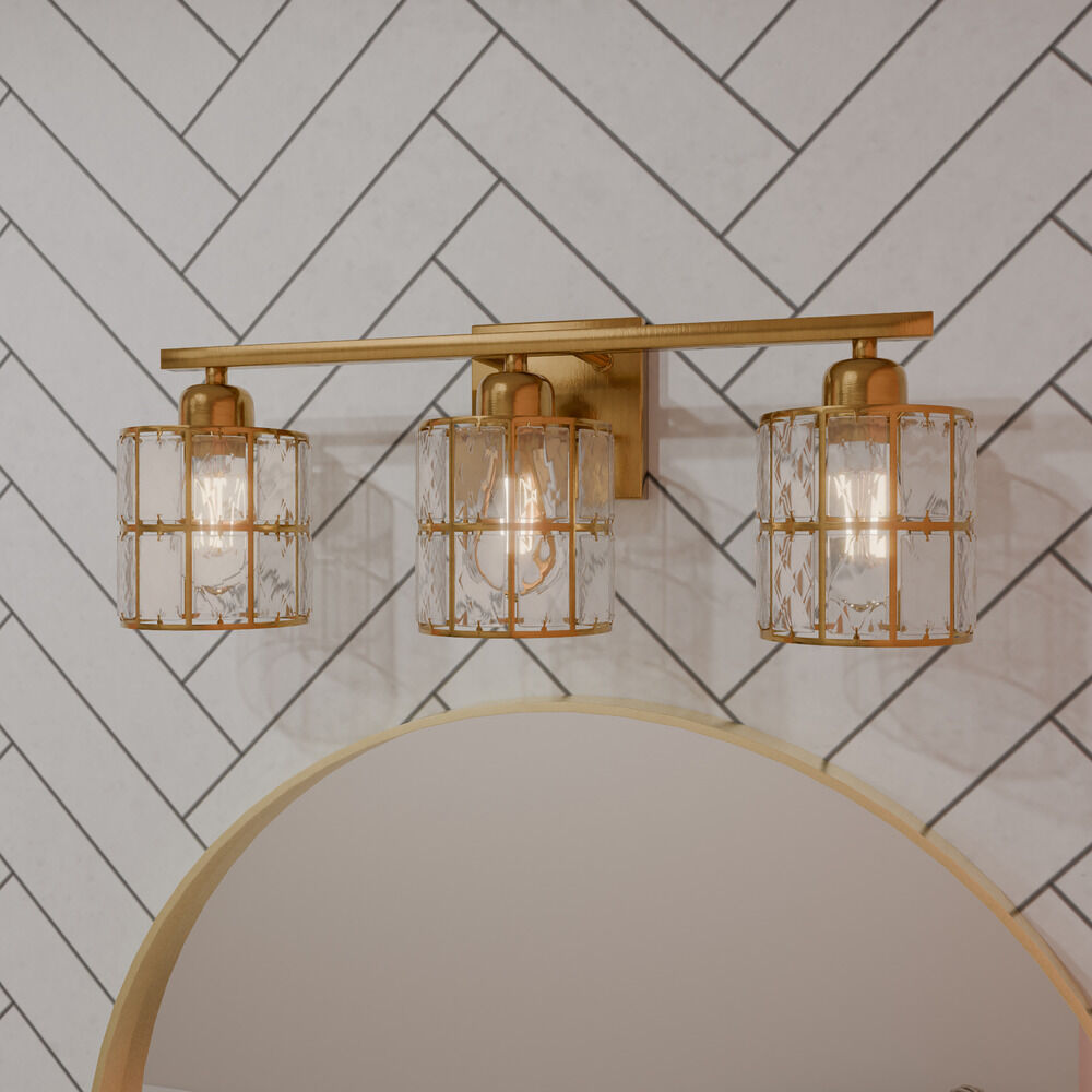 Contemporary / modern aged brass 3-light bathroom light with clear crystal shade