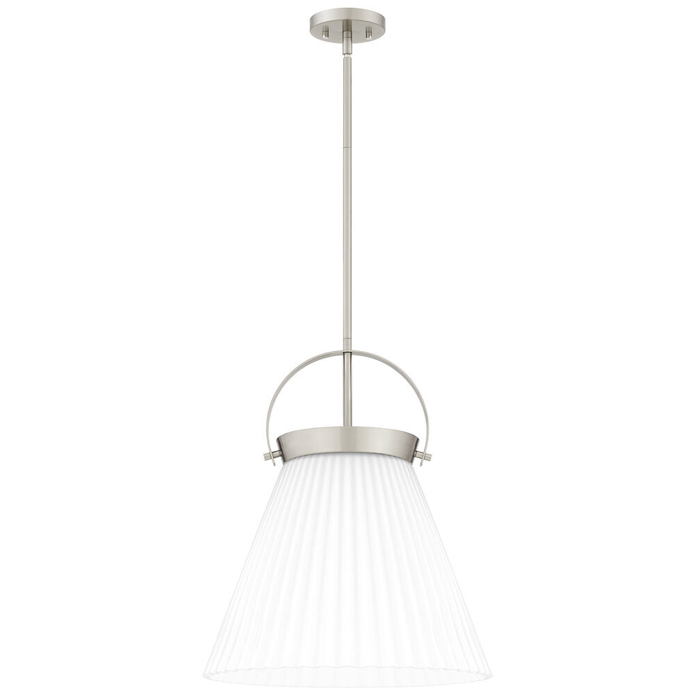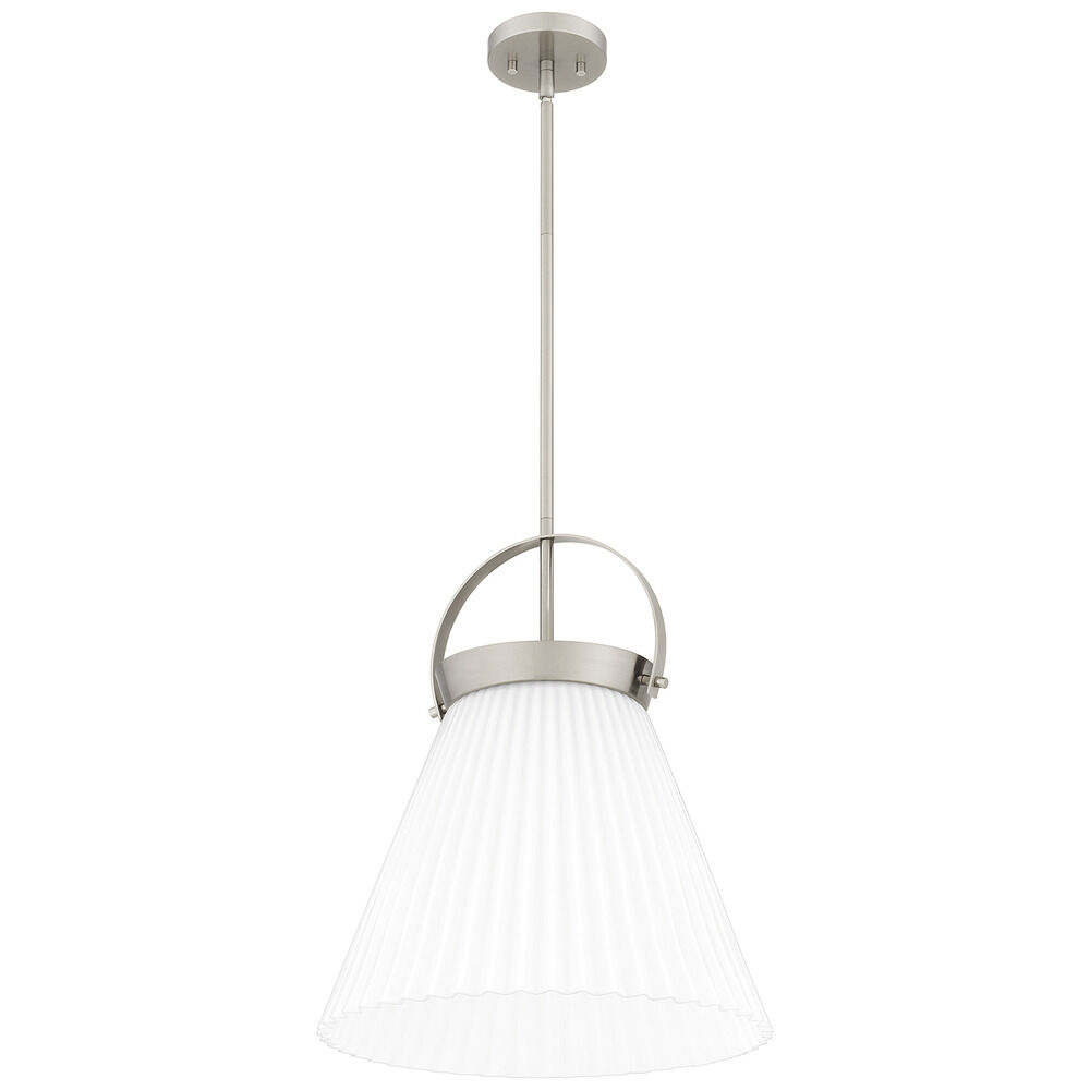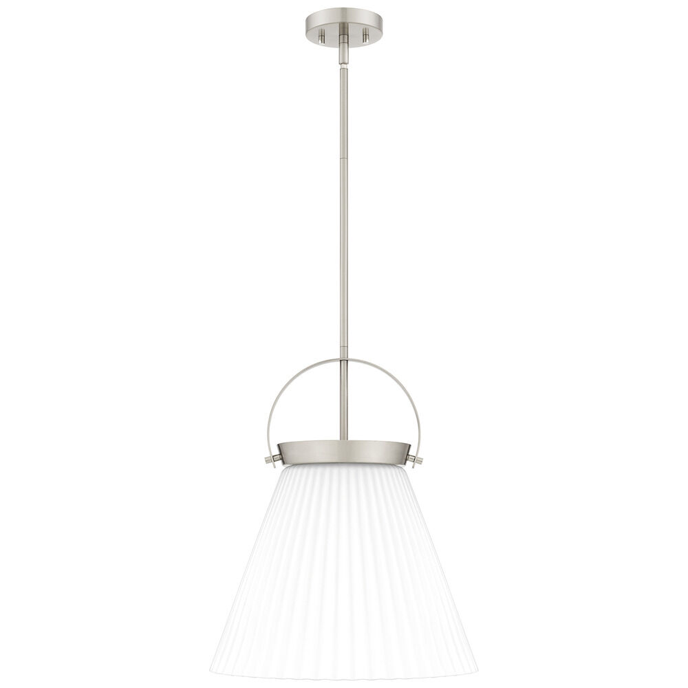 Contemporary / modern brushed nickel 1-light pendant light with ribbed white glass shade