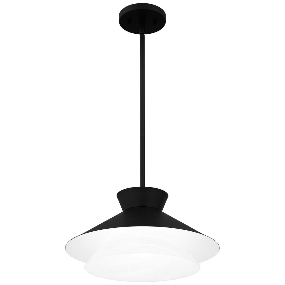 Contemporary / modern matte black 1-light pendant light with alabaster glass,metal shade