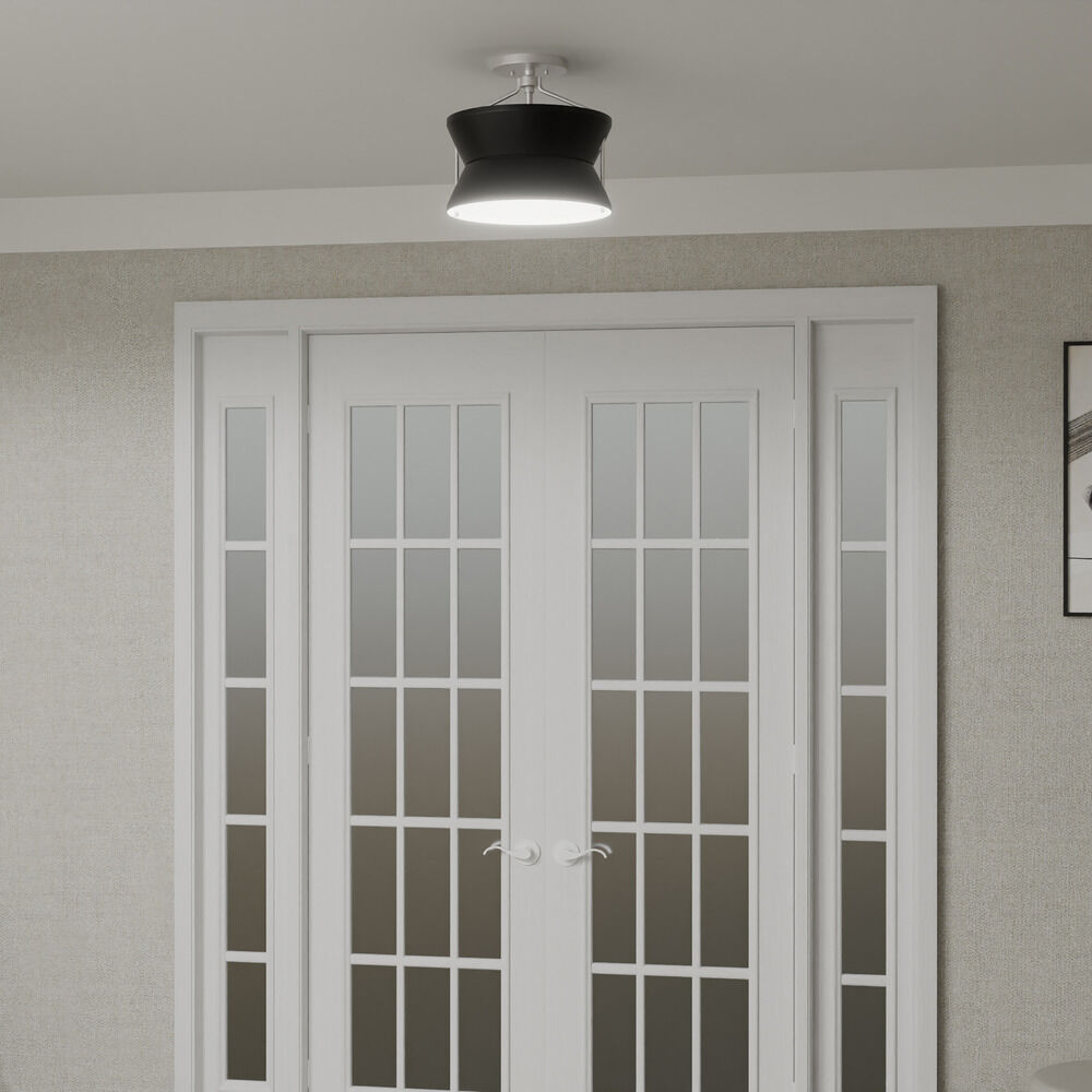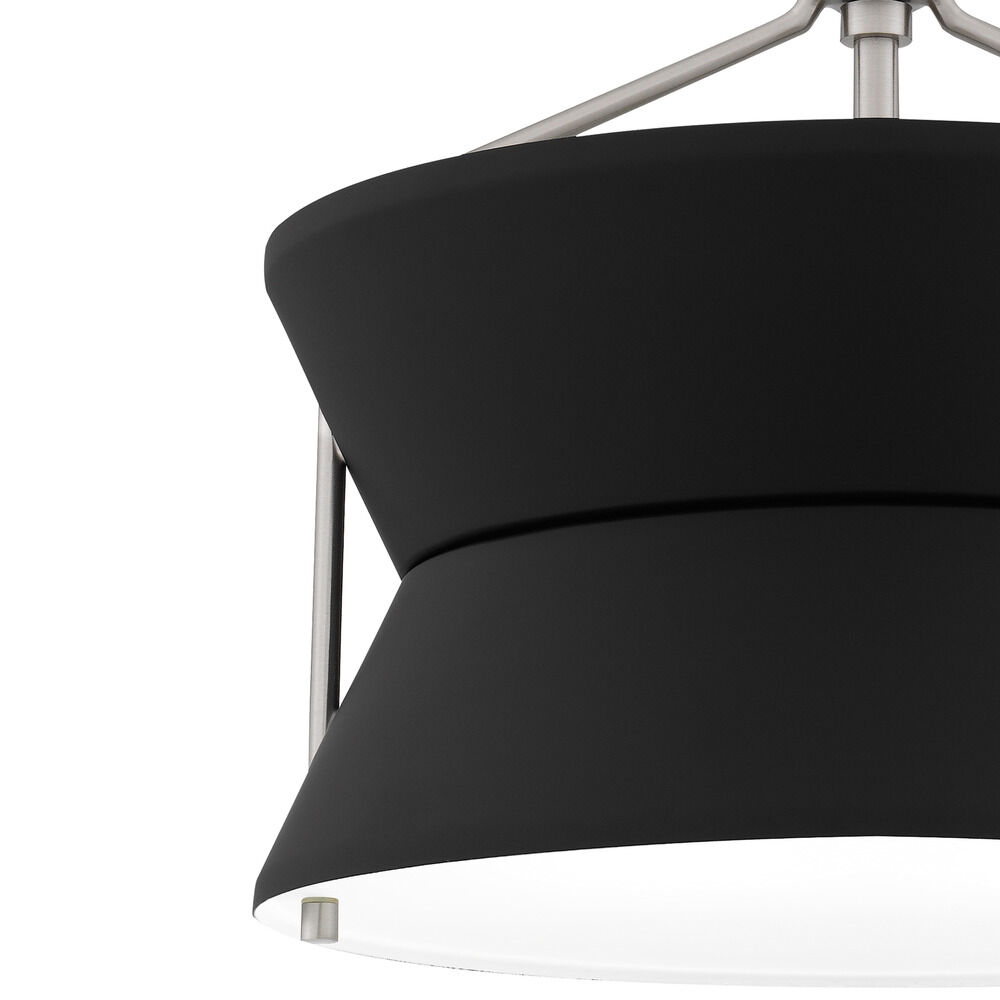 Transitional brushed nickel 2-light indoor ceiling light with black metal shade