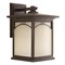 Traditional antique bronze 1-light outdoor wall light with umber textured art glass shadeOne-light large wall lantern with geometric details and textured art glass.