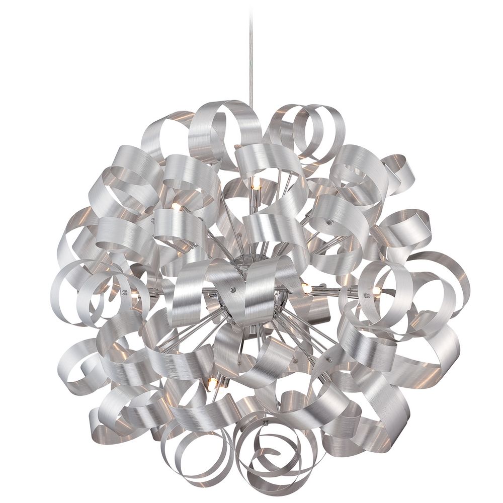 Mid-century modern millenia 12 light pendant light. Quoizel's platinum division is trendsetting and forward thinking at its finest, showcasing the Ribbon's collection. Available in millenia and satin copper finishes, this collection was constructed to resemble a swirling pattern that is unique and captivating.