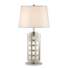 Satin Nickel Table Lamp with White Oval Lamp Shade 27.25-Inch TallManufacturer: Design Trends Lighting Model #: 19001-09 |
