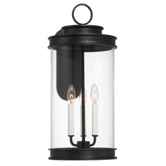 Traditional matte black 3-light outdoor wall light with clear glass shade