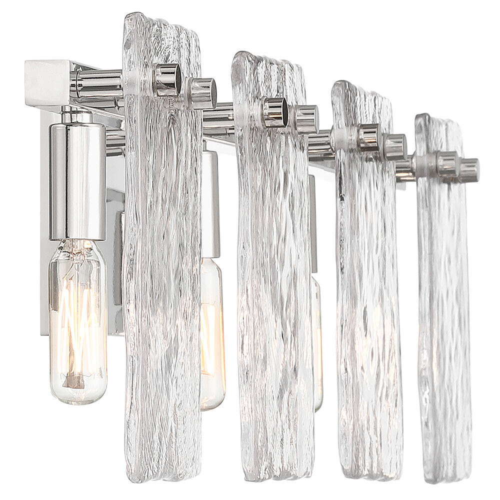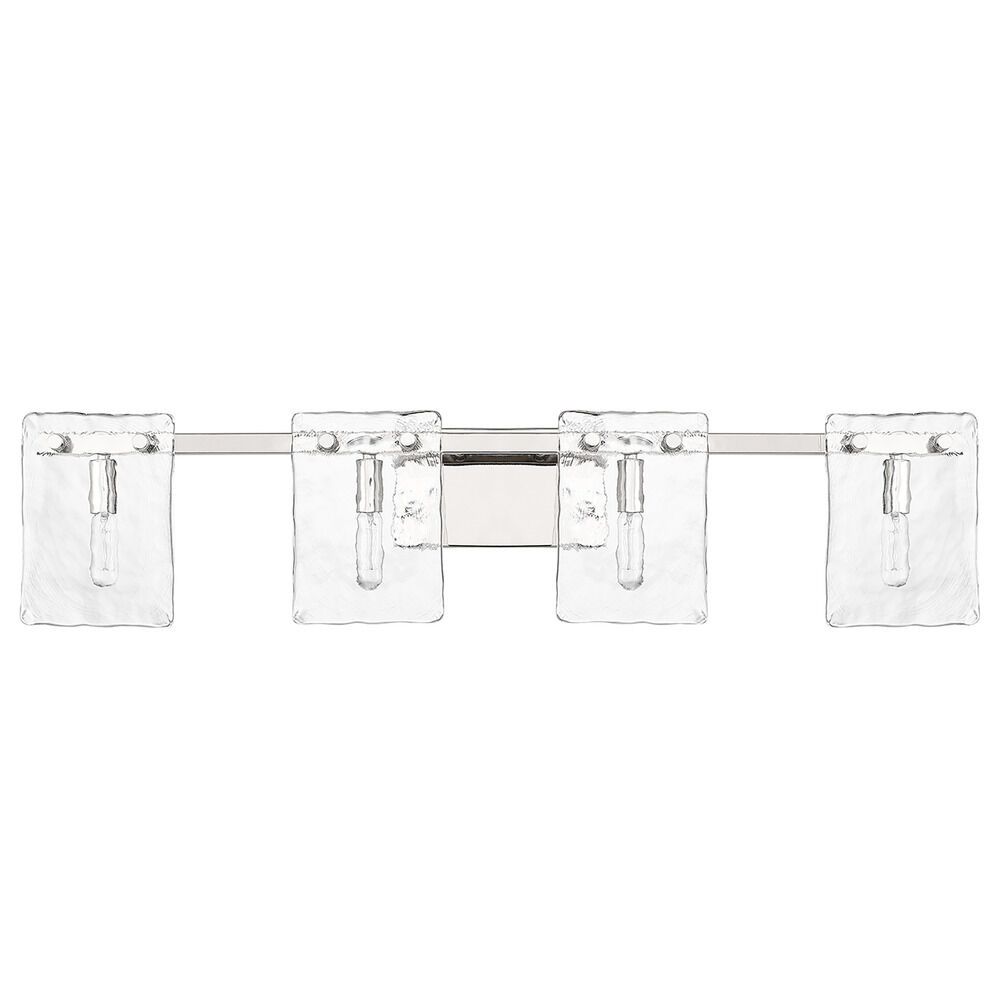 Coastal polished nickel 4-light bathroom light with clear,water handmade water glass shade