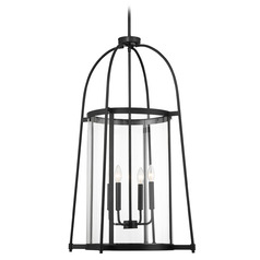 Contemporary / modern matte black 4-light pendant light with clear glass shade